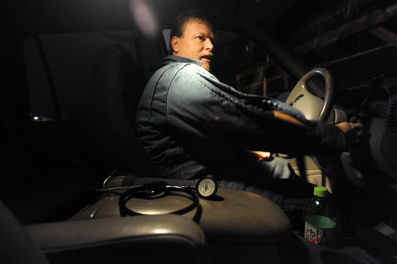 Routinely, though, he hops in the car and heads out to a farm to check on someone’s cows.