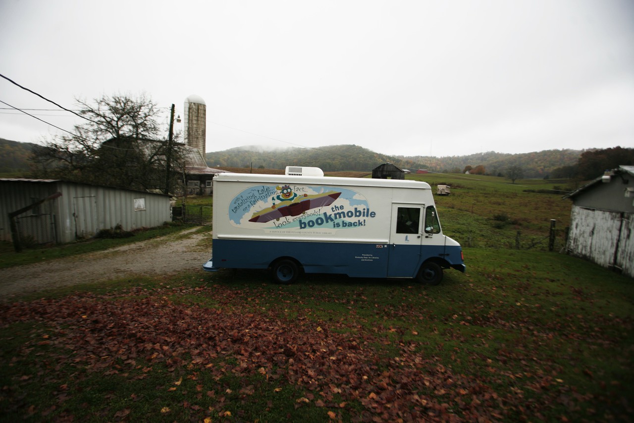 Marlina Coomer operates Pulaski County Public Library’s bookmobile, driving almost 10 hours each day delivering books, a warm smile or even a 30-minute visit to people who don’t have ready access to the local library—people like Libby Carter. Libby has read almost every novel in the bookmobile. Each month, Marlina fills Libby’s worn cardboard box with dozens of new books chosen especially for her. During a stop at The Children’s House on a cold Thursday morning, Marlina greets a dozen preschoolers climbing on hands and knees up the steep, metal steps of the truck, their eyes widening at the sight of thousands of books. ”I’ve never seen anything like this before!” a boy whispered. “You’ve never been on the bookmobile?” Marlina asked. “Well, take a look around!” She guided him gently toward the children’s section.