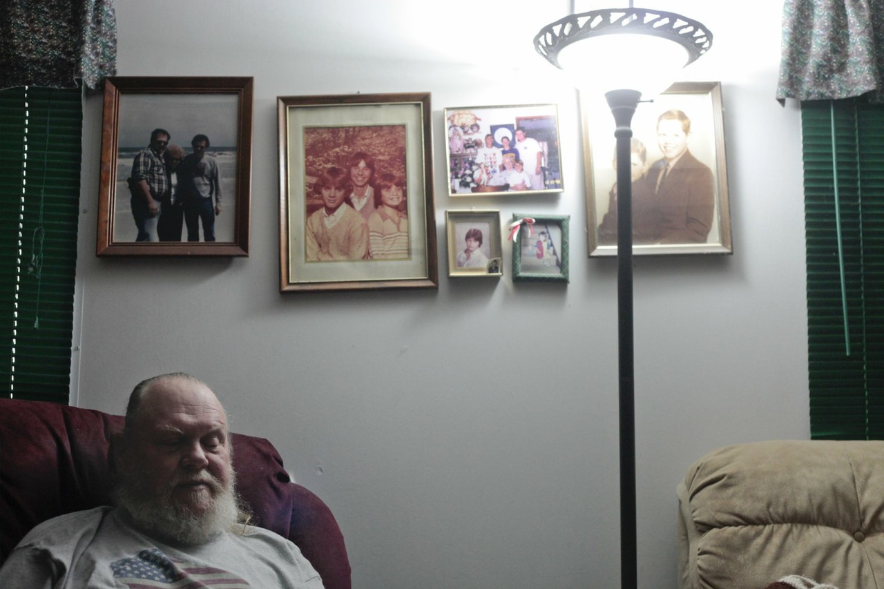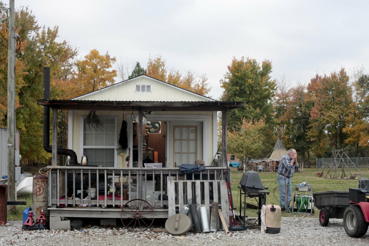 Wallace used to ride motorcycles to lose himself on the open road; now he finds other ways. He sits on the front porch of his small office, sanding a wooden ring that in a few days will be a ceremonial drum. Still living with limited vision, Wallace rubs the edge against his cheek to find imperfections.