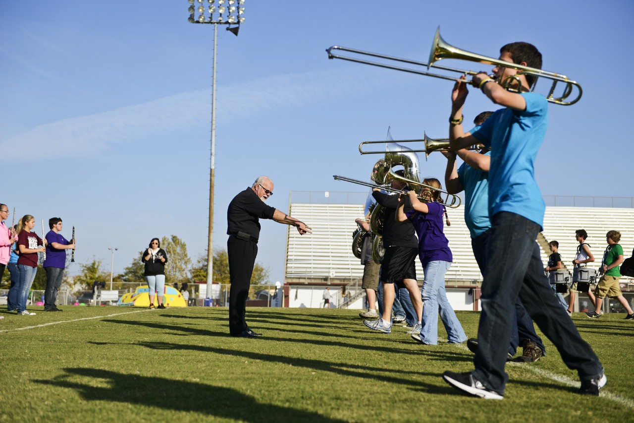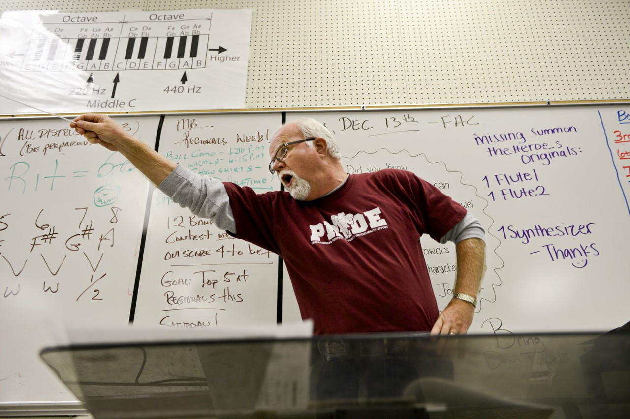 Behind a music-sheet littered desk and surrounded by dark wood-crafted awards, sits Keith Vincent, band director for The Colonel’s Brigade and Marching Band. His thinning hair and eyesight sharpened with help from glasses belie his strong, clear vision.
