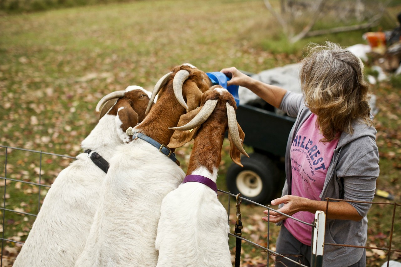 While weather generally dictates her schedule, Karen begins her day feeding and tending to her farm animals. Currently, she breeds Boer goats, raises chickens and ducks, and takes care of several dogs, cats and a rabbit.