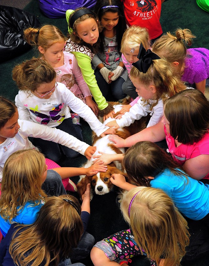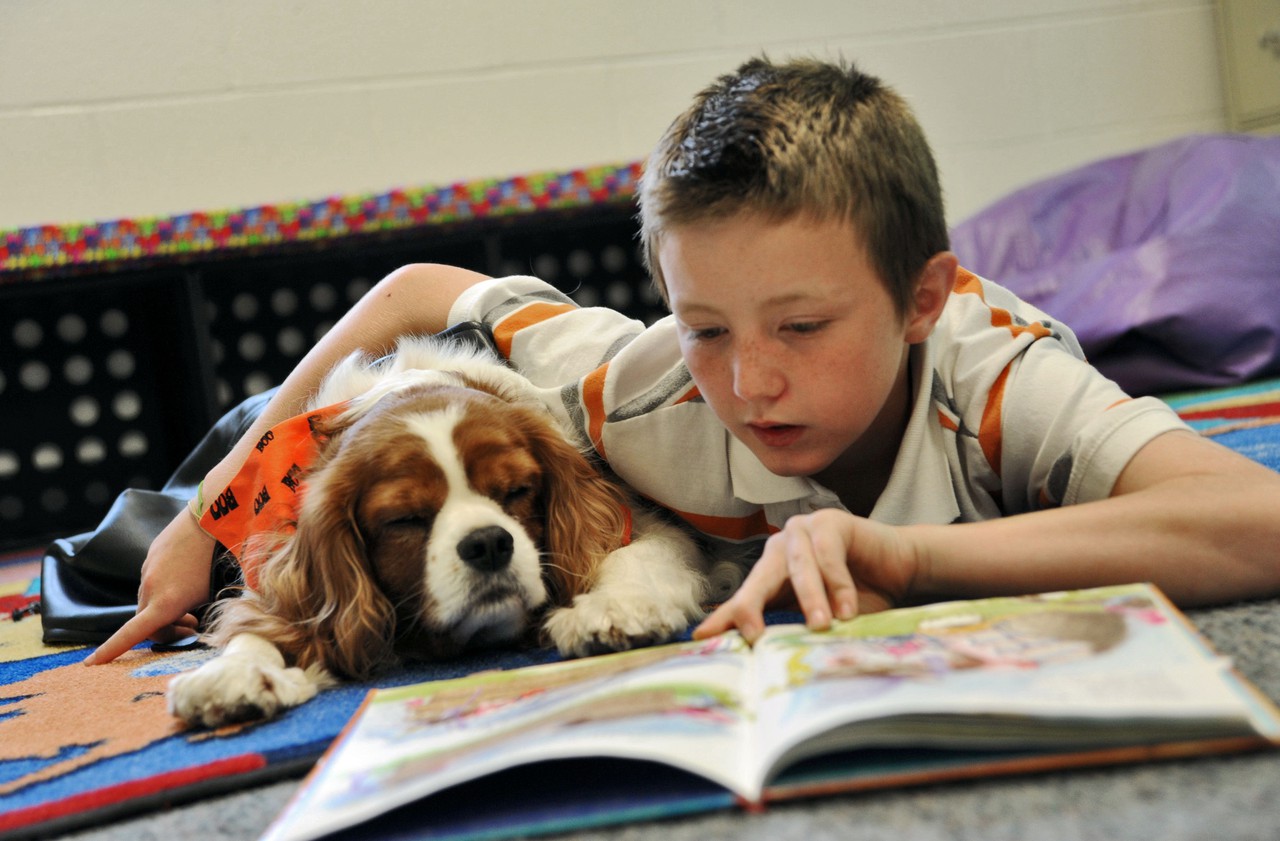 “Ben has really been an inspiration for reluctant readers,” says Brenda Walker, a guidance counselor at Country Heights Elementary School. Ben lies next to children who are special needs or hearing impaired to listen non-judgmentally as they read their favorite books aloud.