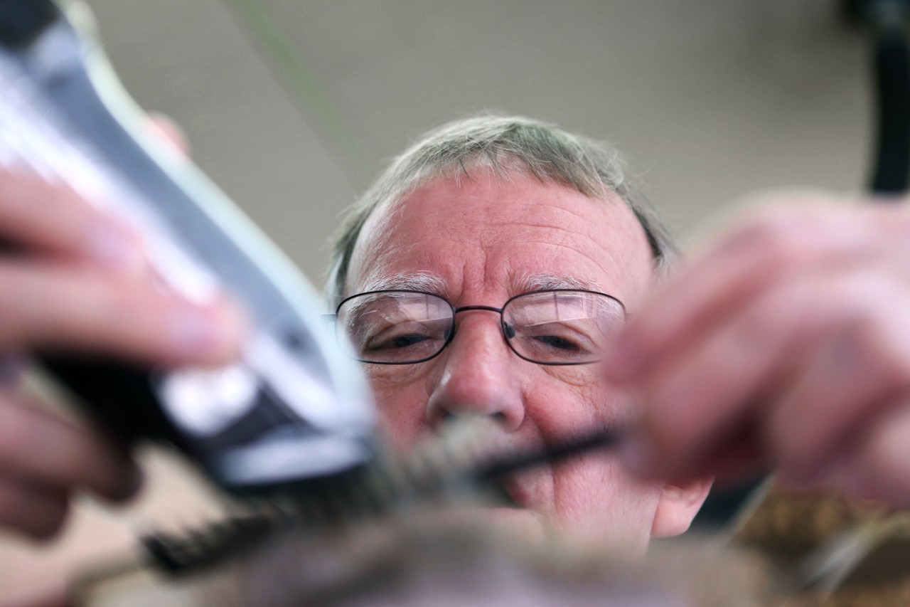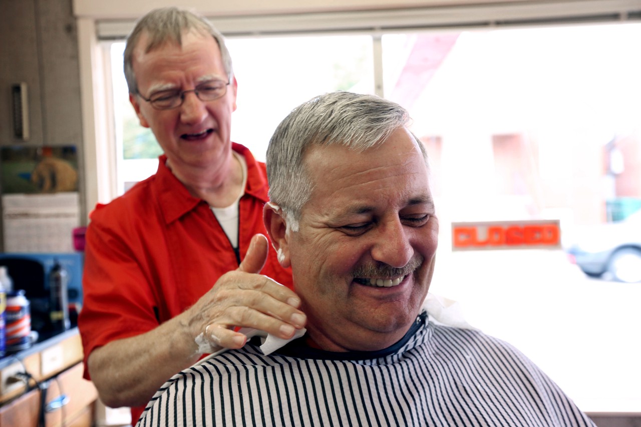 Gordon Black comes to get his hair cut every two weeks. “I’ve been coming here for 15 or 16 years, ever since I moved back to town,” he says. “There’s a good atmosphere here. Cooper gives a good haircut, it’s fun, I can listen to the stories, and the price is right.”