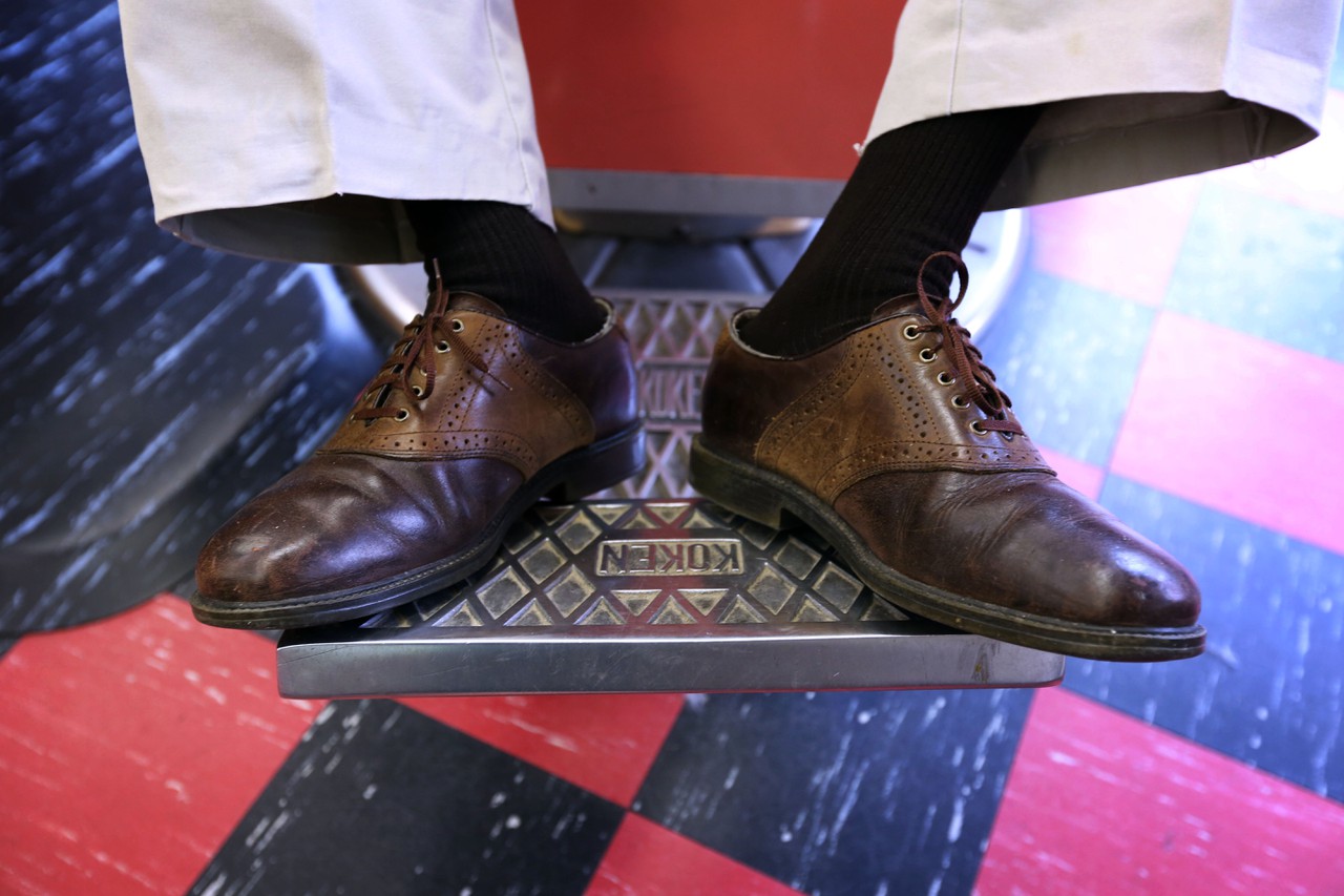 Steve stands around the same barber chair from 8 a.m. to 5 p.m., rarely leaving that three-foot radius. The gray-haired, soft-spoken man listens to his customers and doesn’t say much other than, “There you go, young fella,” as he folds up the barber’s cape.