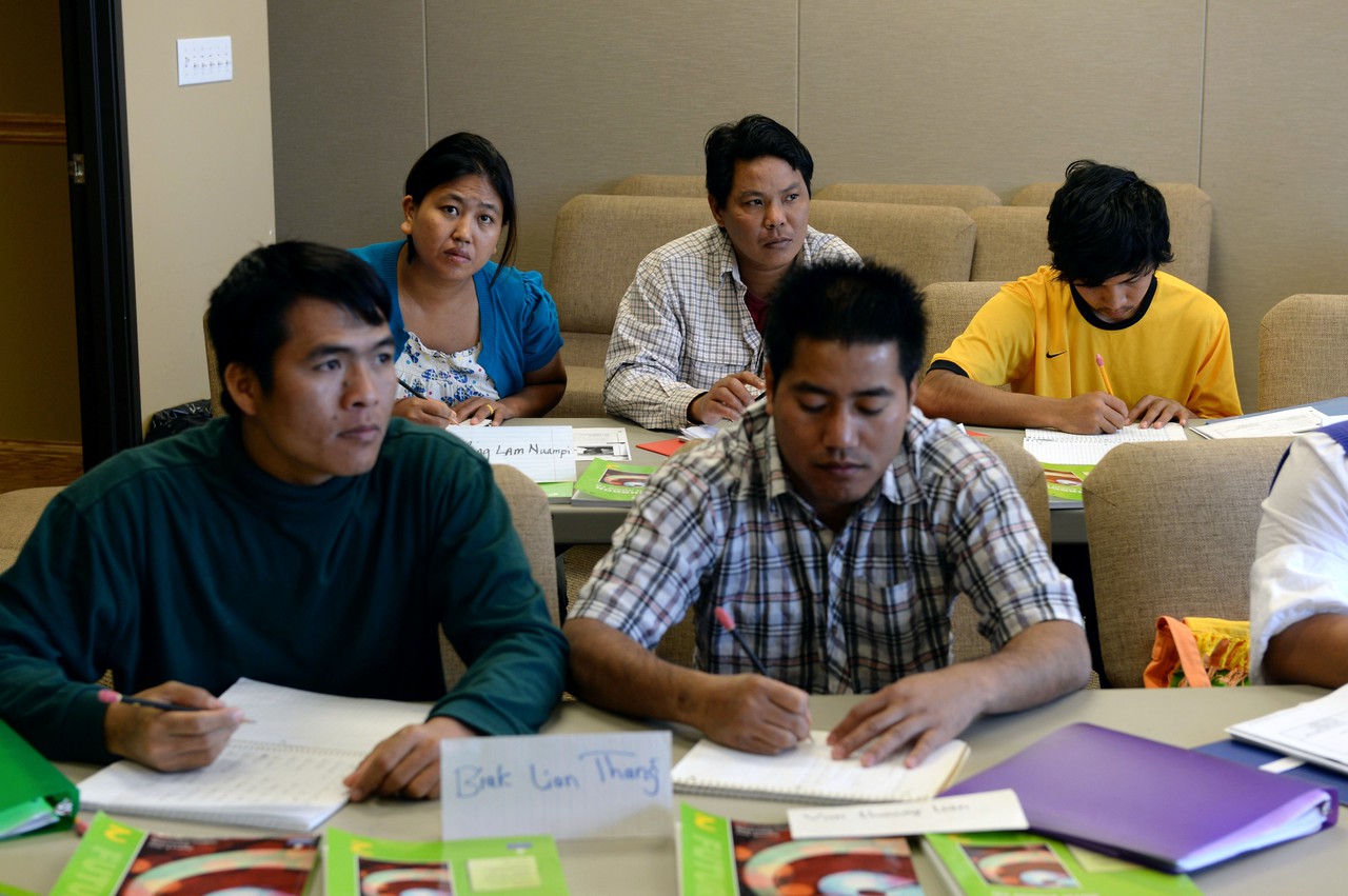 Cing Lam Nuampi attends English Language Learner classes four days a week with other refugees.