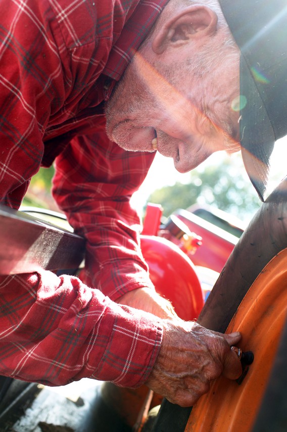 Sunlight dapples Robert “Bob” Roberts’ back as he jerks left, right, backwards and forwards, guiding his commercial-sized lawn mower over another strip of grass. His flannel overcoat is covered in grass clippings and his brow is dripping sweat. At 81 years old, Bob mows more than 30 lawns a week.