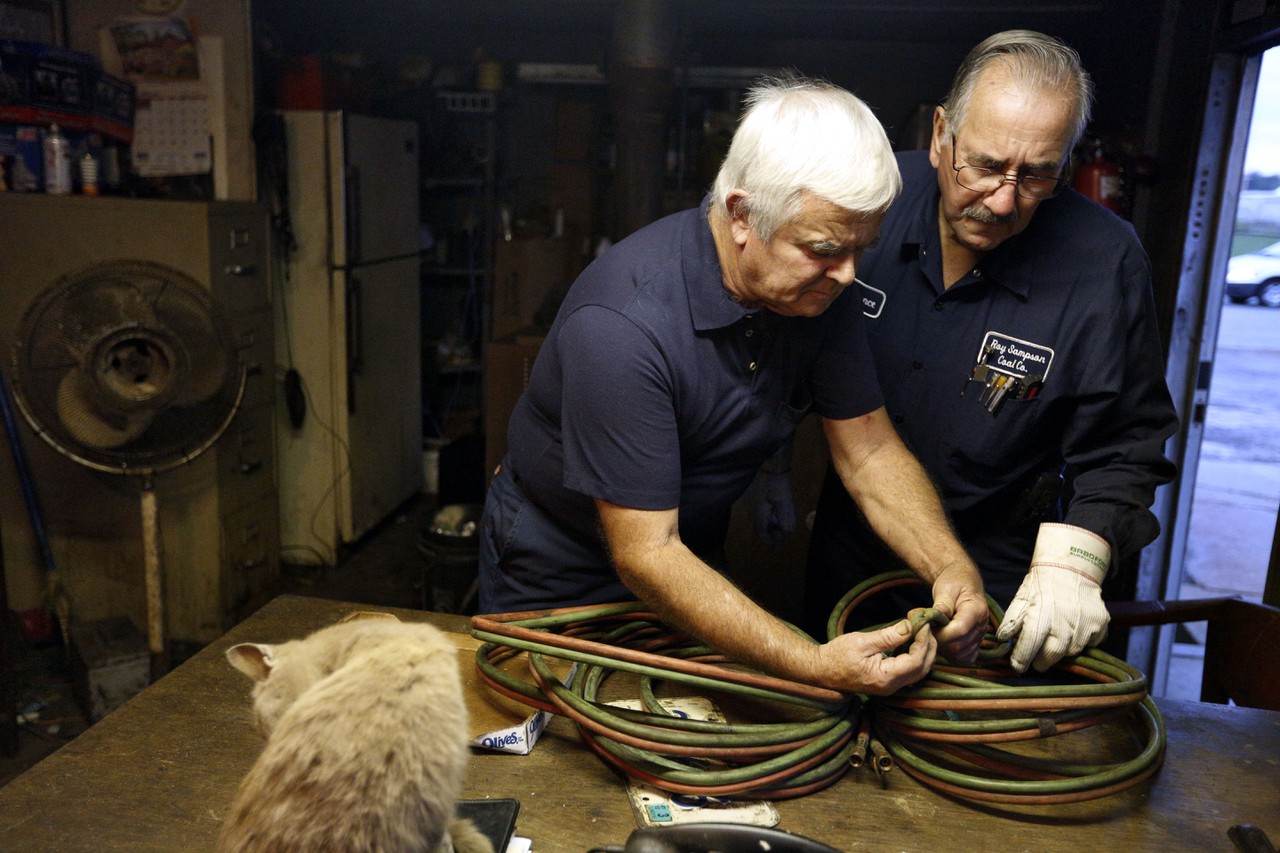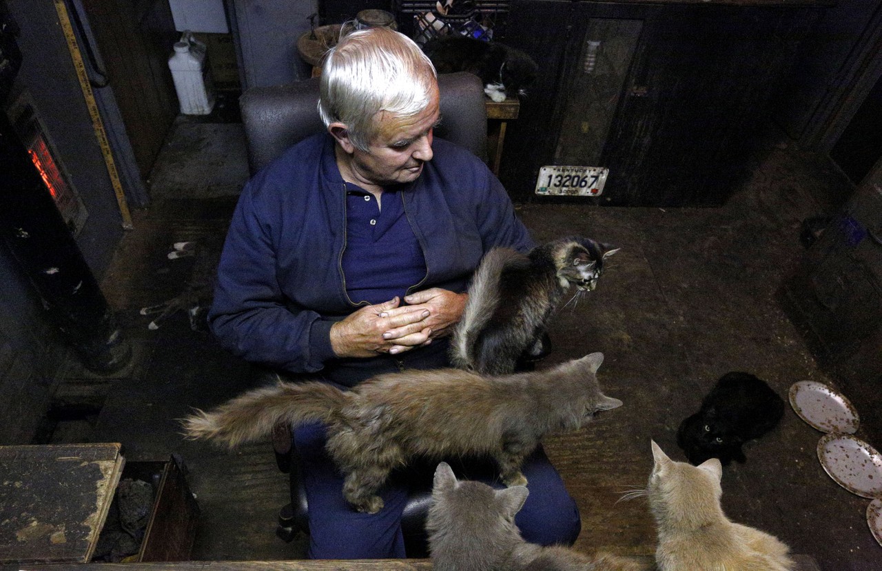 It would be about an hour until his employees arrived, but the patter of footsteps told Ernie he was not alone. Twelve cats – none of them named – filtered between his legs, over the legs of his chair and in and out of the office itself.