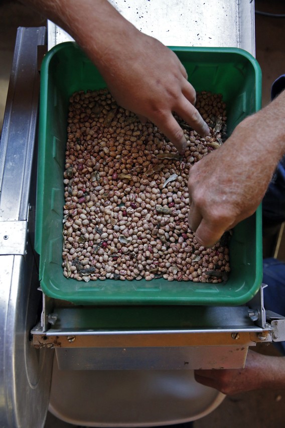 Fast forward to October 2014, and it’s bean season for Bill, founder and director of Sustainable Mountain Agriculture Center. Day in and day out, Bill works alongside his grandson, Brian, 23, and two part-time employees picking beans to dry out, shell and package for selling and swapping. He is an heirloom-seed saver, intensively engaged and committed to the nearly year-round process of planting, growing, harvesting and preserving the genetic potential of tomatoes, squash and beans.