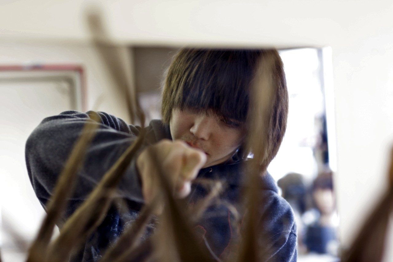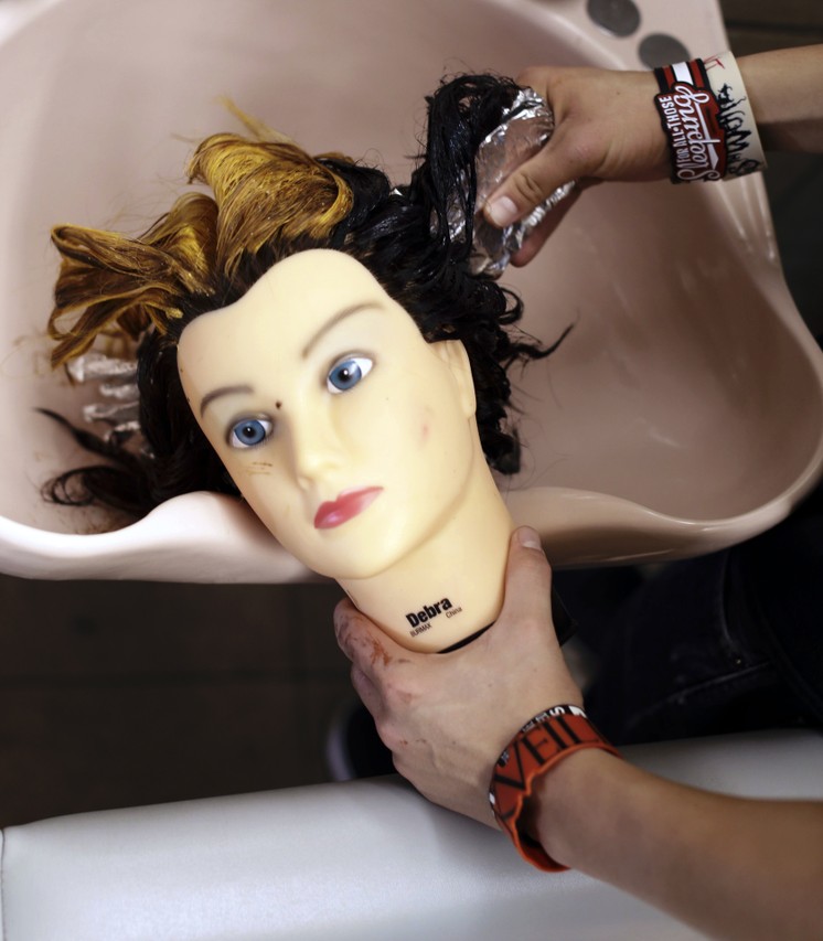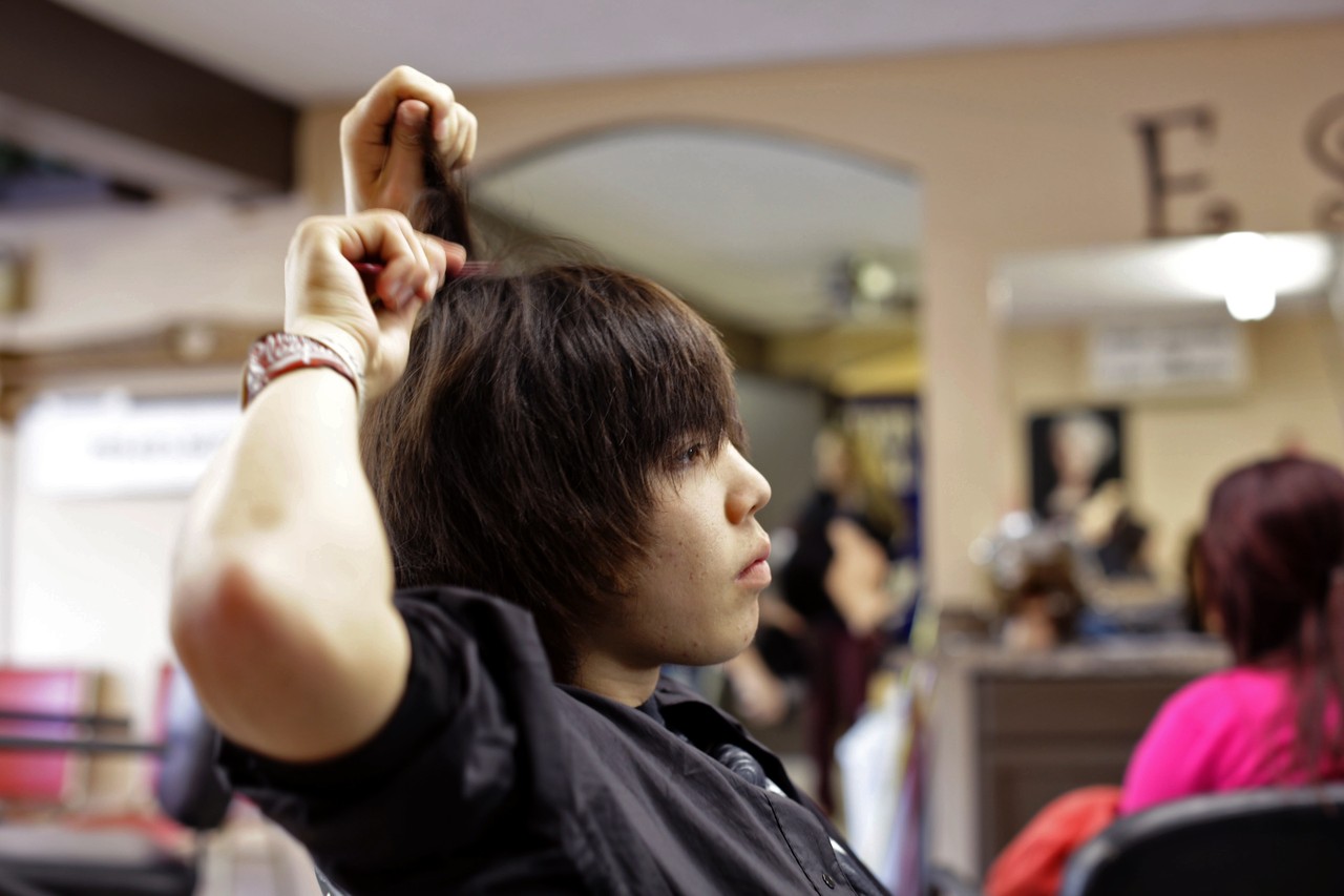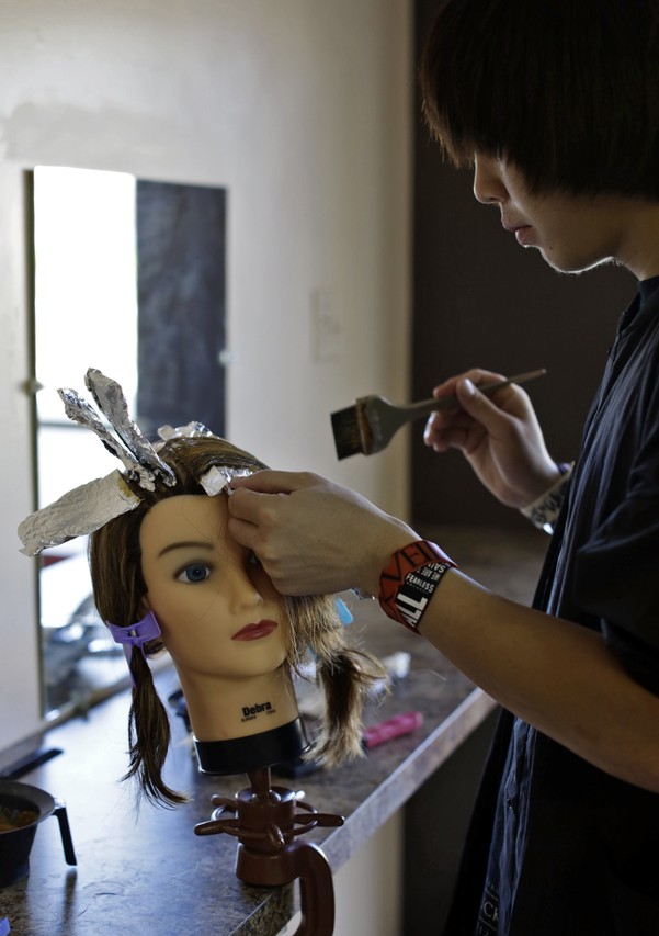 An introvert, Brandon stays quiet and focused throughout the day, working on complex hair designs. He loves music, especially metal, hard rock and punk, and his ultimate goal is to be a hair stylist for rock stars.
