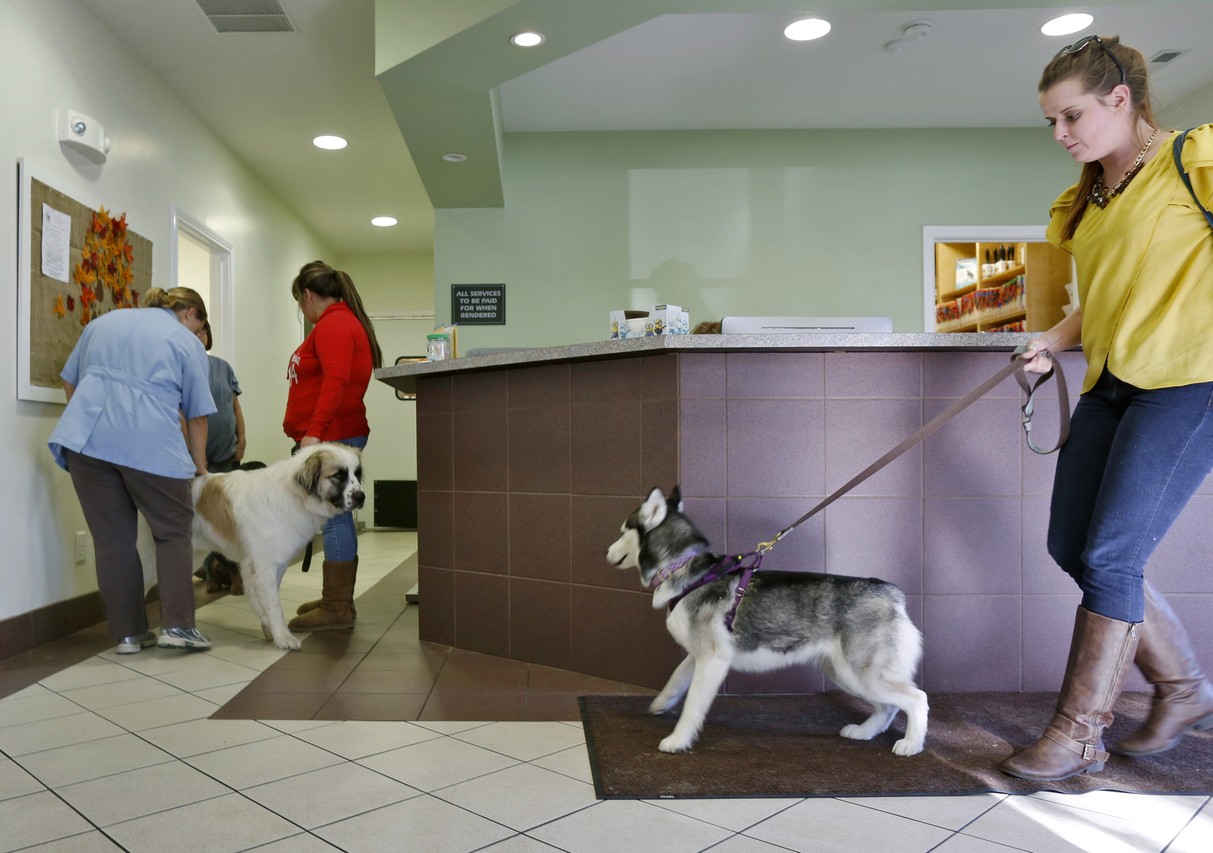 It’s 10 minutes to closing on a warm autumn afternoon when a frantic mother and her two daughters rush into the Animal Medical Clinic, carrying their wounded dog.