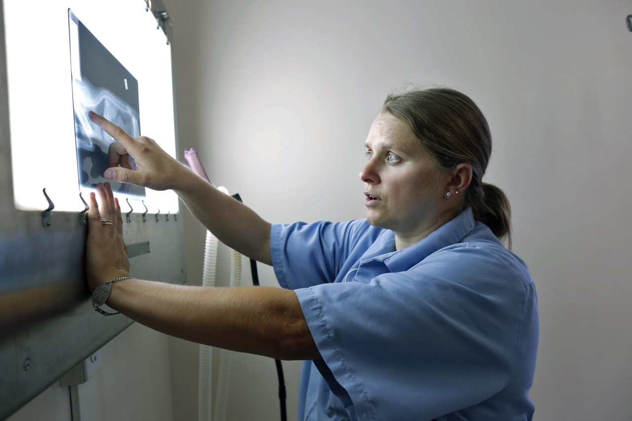 Carrie, 37, started her veterinarian career by volunteering at a Lawrenceburg clinic and has never thought twice of changing her path.