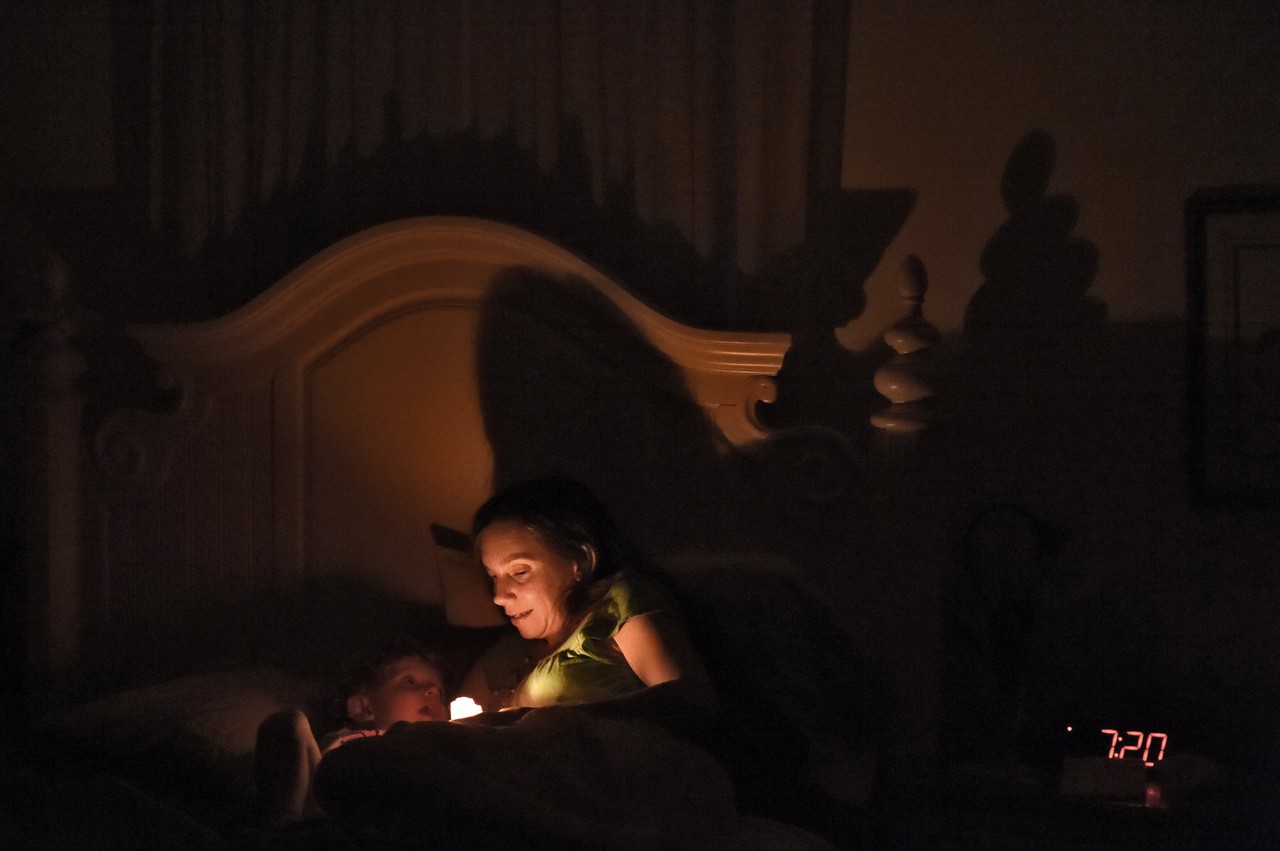 They light a candle together as they give their gratitude to friends and family for the day. When Edison is a bit restless, his mother tells a story.