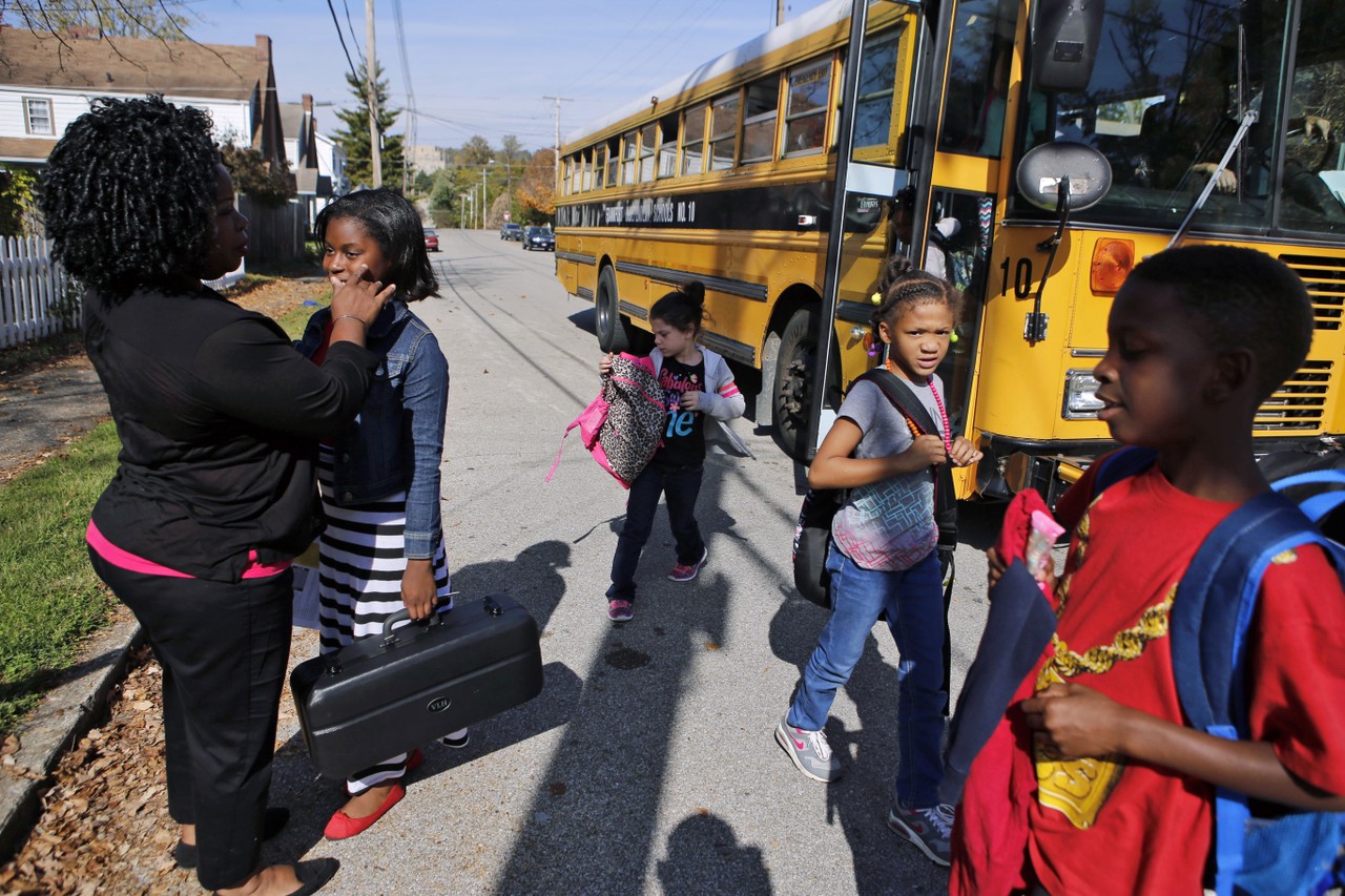 On weekdays, she waits for the bus, greets them and walks them into the center. She shepherds about 50 children each day.