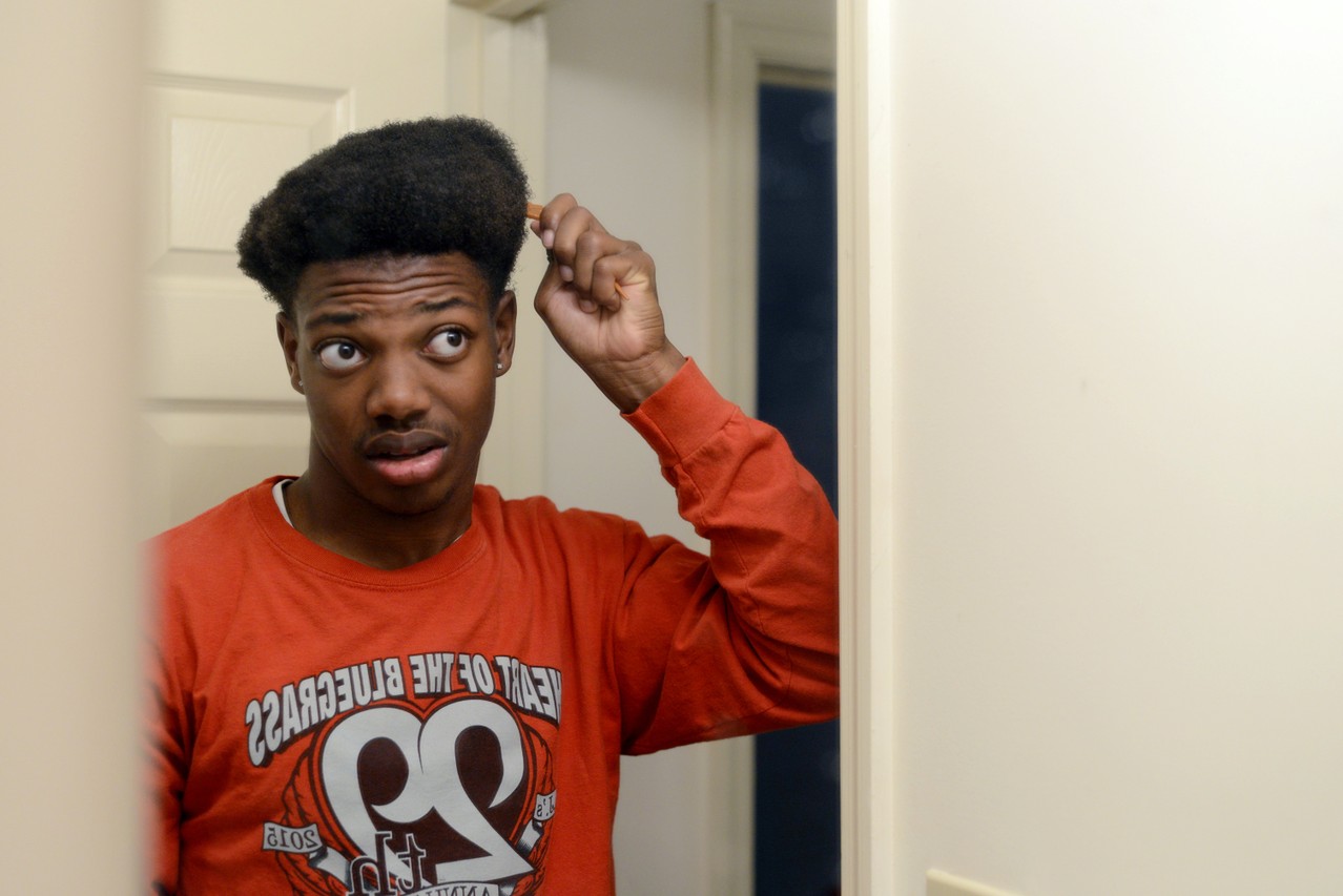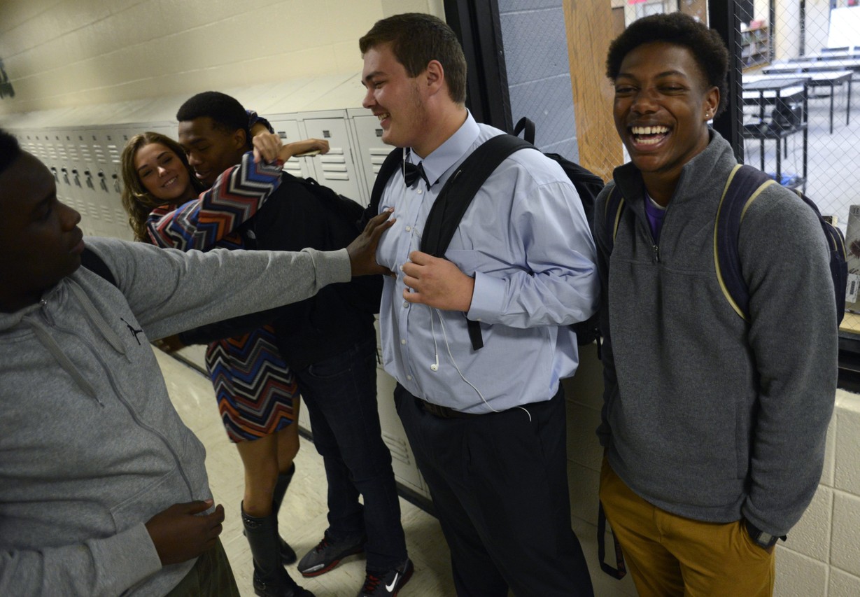 At 9:35 a.m., D.J. Green, 17, walks out of his Algebra 3 class and meets his friends in the hallway of Western Hills High School. Amid public displays of affection and teenage rough housing, D.J. quietly stands to the side and observes.