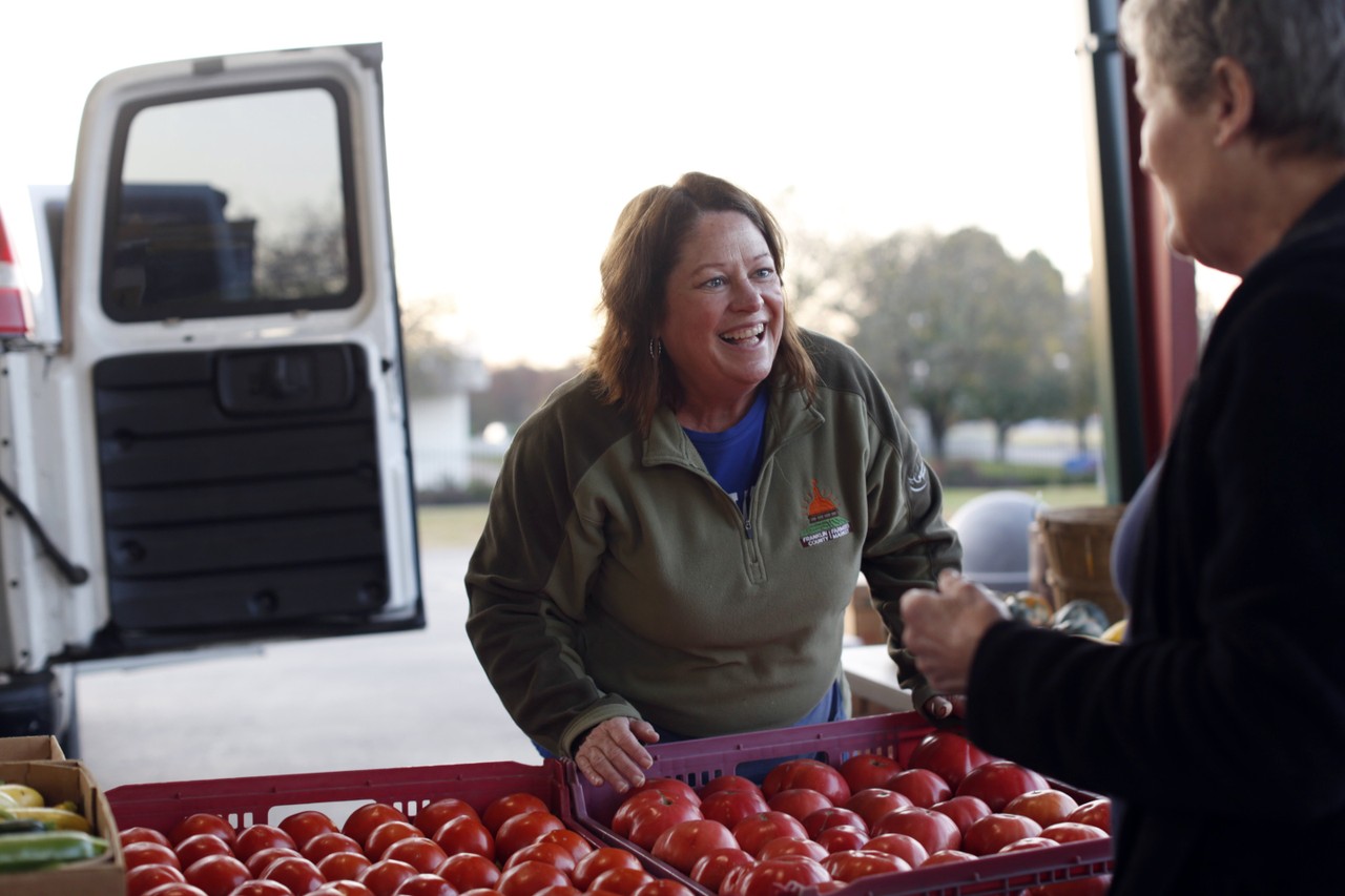 Susan’s sister helps grade tomatoes. Her son helps work the Franklin County Farmers Market on Saturdays. Her husband does most of the brute labor from seeding to planting to loading the trucks for deliveries. Susan takes care of everything else.