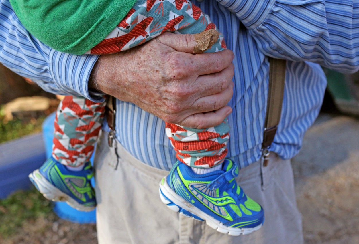 When Adam, 23, and David, 27, work the field, Richard is rarely far behind. When they move a log, he tells them where it should go. When the goats get out, they report the news to him.