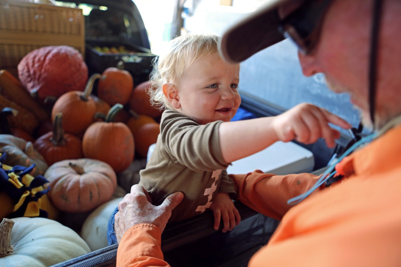 “He’s the real boss around here,” Richard Jones says, laughing and pointing to his 15-month-old grandson – the sixth generation of the Jones family to stir up dirt on Happy Jack’s Pumpkin Farm.
