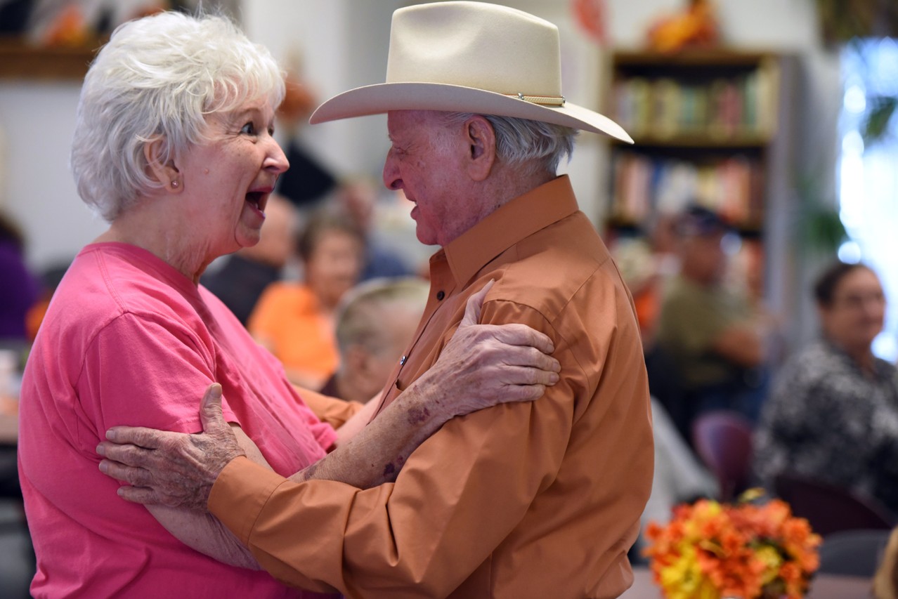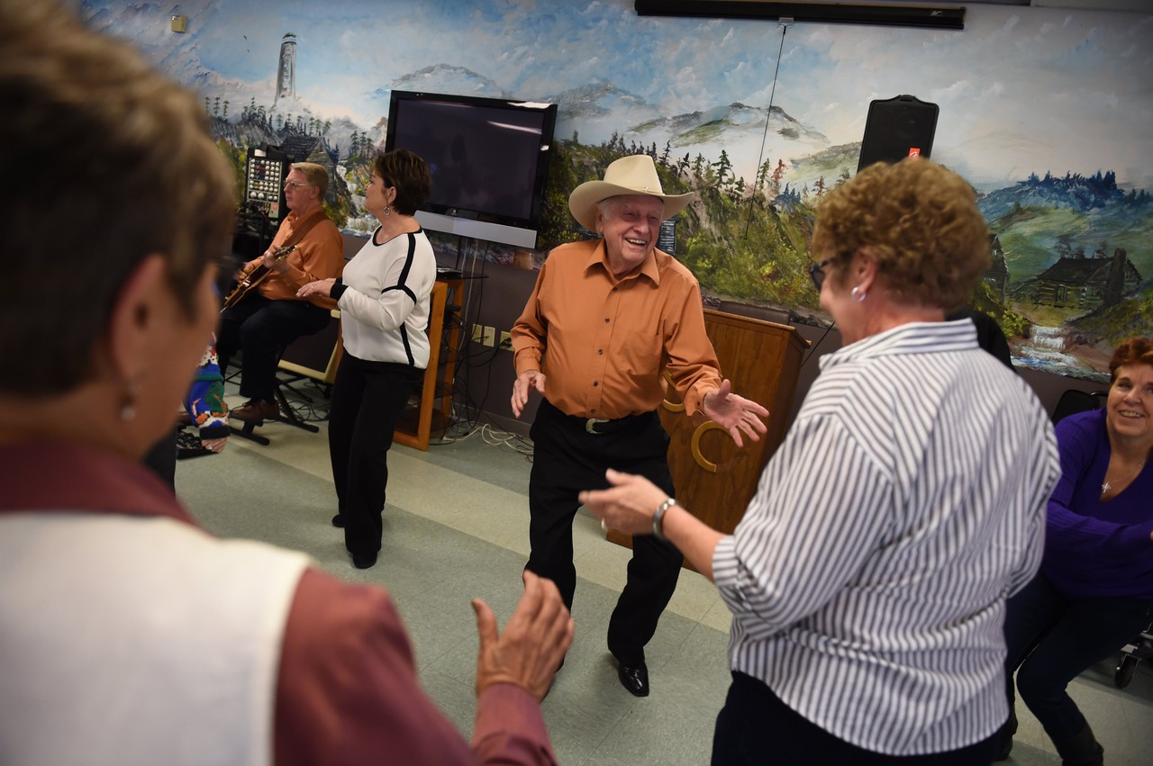 He plays in two bands, Ageless Country and Arnold Clark and Friends. He entertains at several senior centers around the region, strumming his guitar and dancing with the women. His wife, Odessa, usually joins him on visits to the centers.