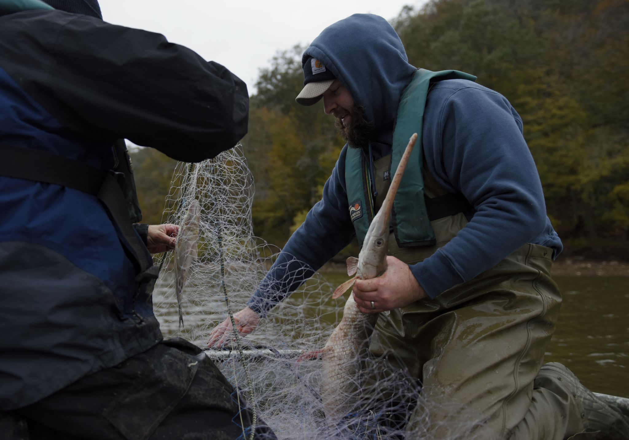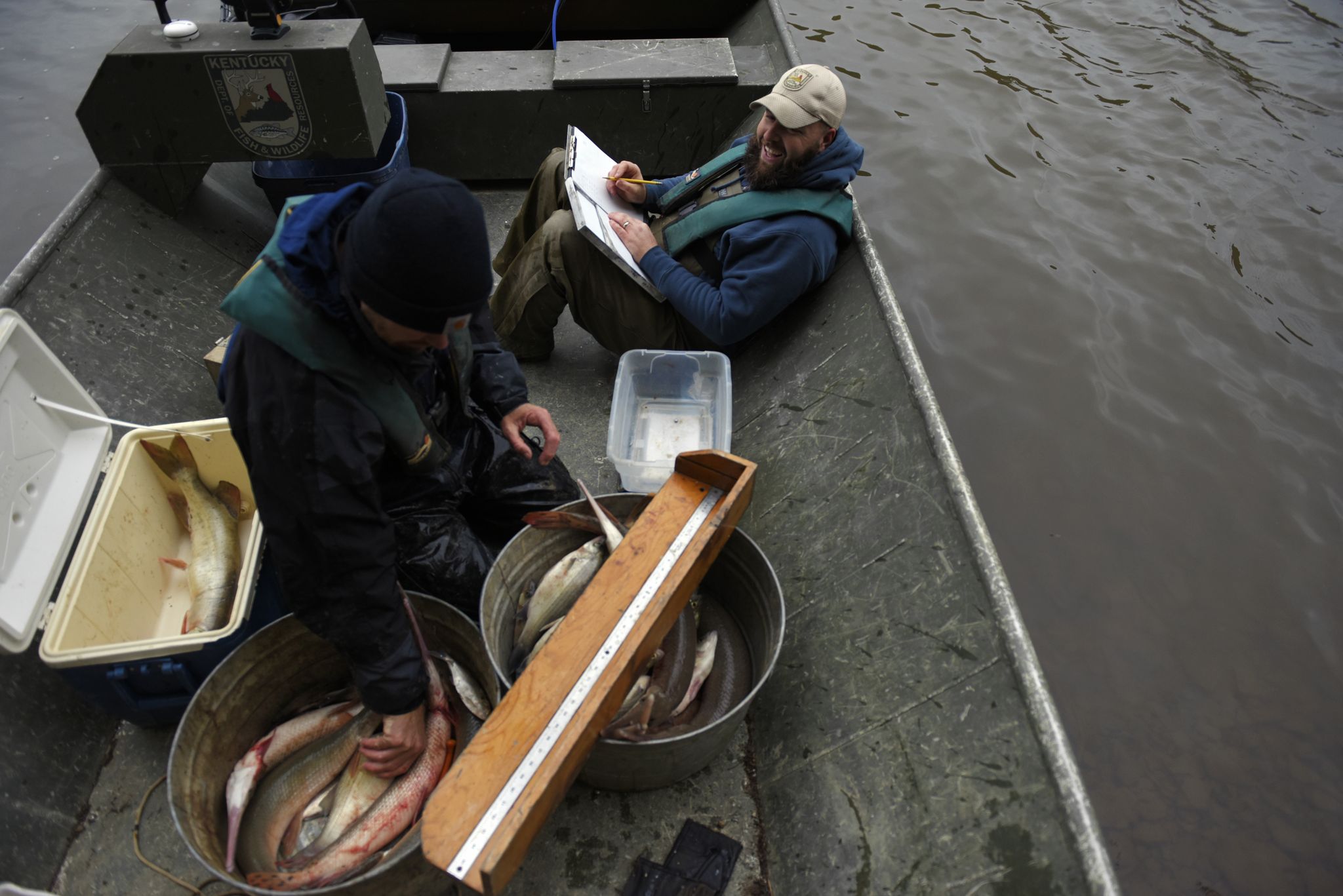 He gillnets fish to sample for his annual report as part of his work as a District Fisheries biologist for the Kentucky Department of Fish and Wildlife at the Minor E. Clark Fish Hatchery. The samples will help determine the size and creel limits for fishing in the 23 counties he supervises. Tom feels it is his responsibility to enhance and preserve the environment.