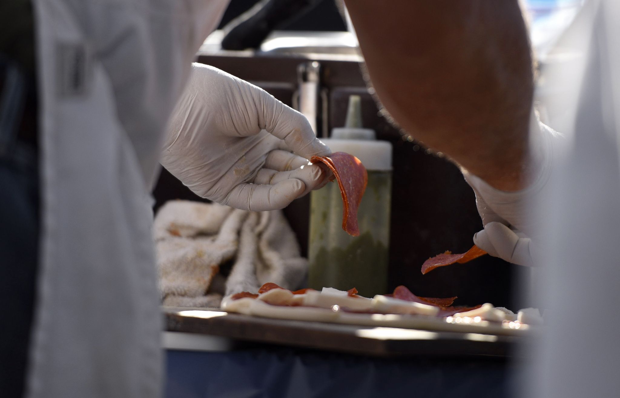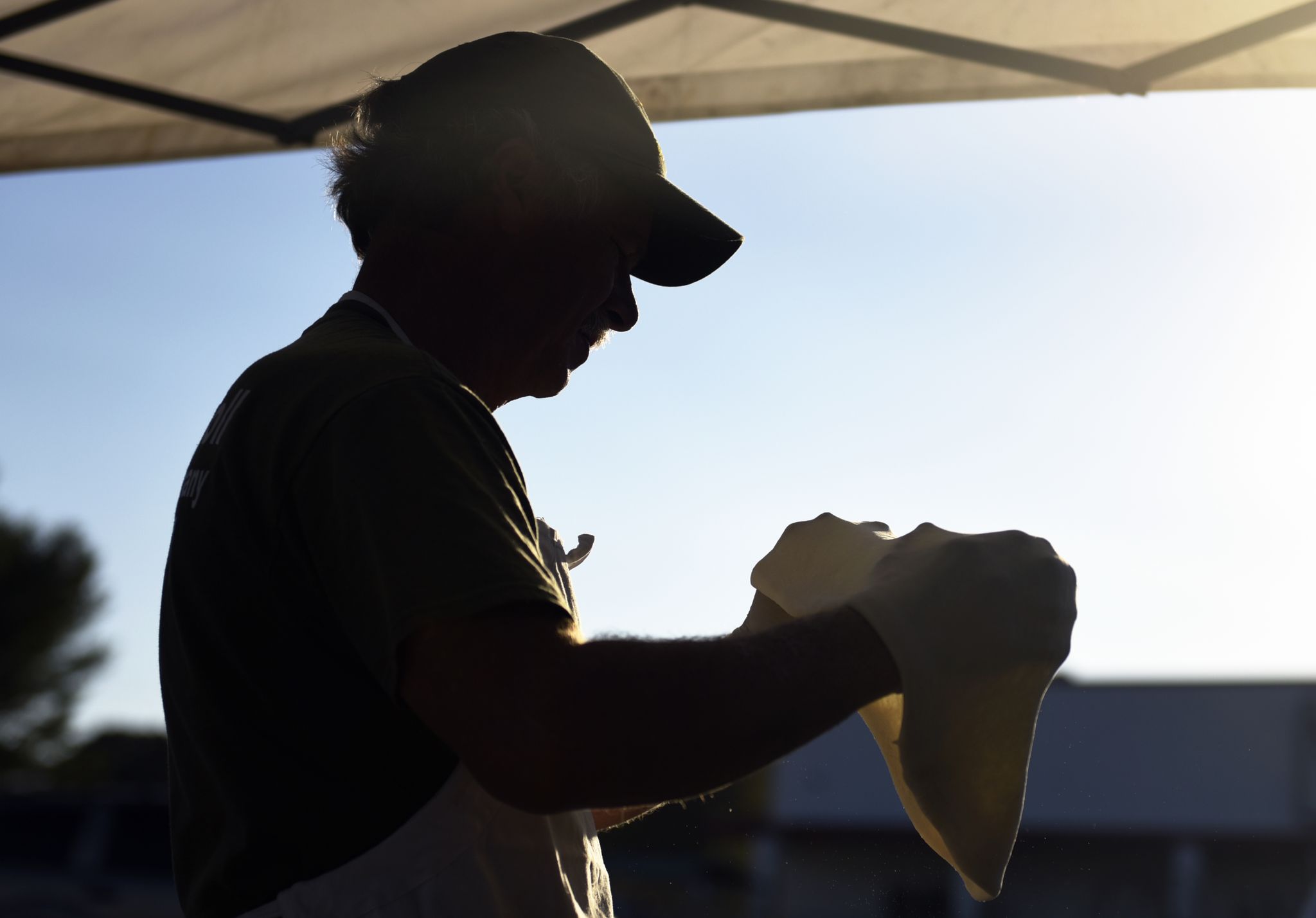 “Once we were settled and everything, it was like, ‘I want to go back and cook,'” says Jerry. He spent six months building a 7,000-pound, wood-burning brick oven then figured out how to secure it on a trailer. In March of 2017, Rise & Roll Brick Oven company was born.