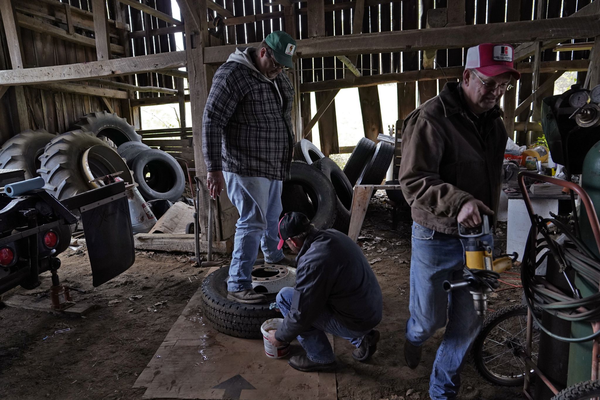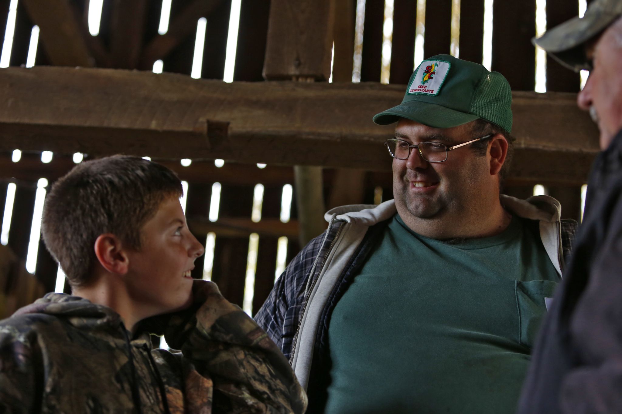 He, his uncle, Ricky, and his dad, David, spend their time fixing trucks and, in October, when the soybeans are up to his hip, harvesting. He's followed in their footsteps all his life.