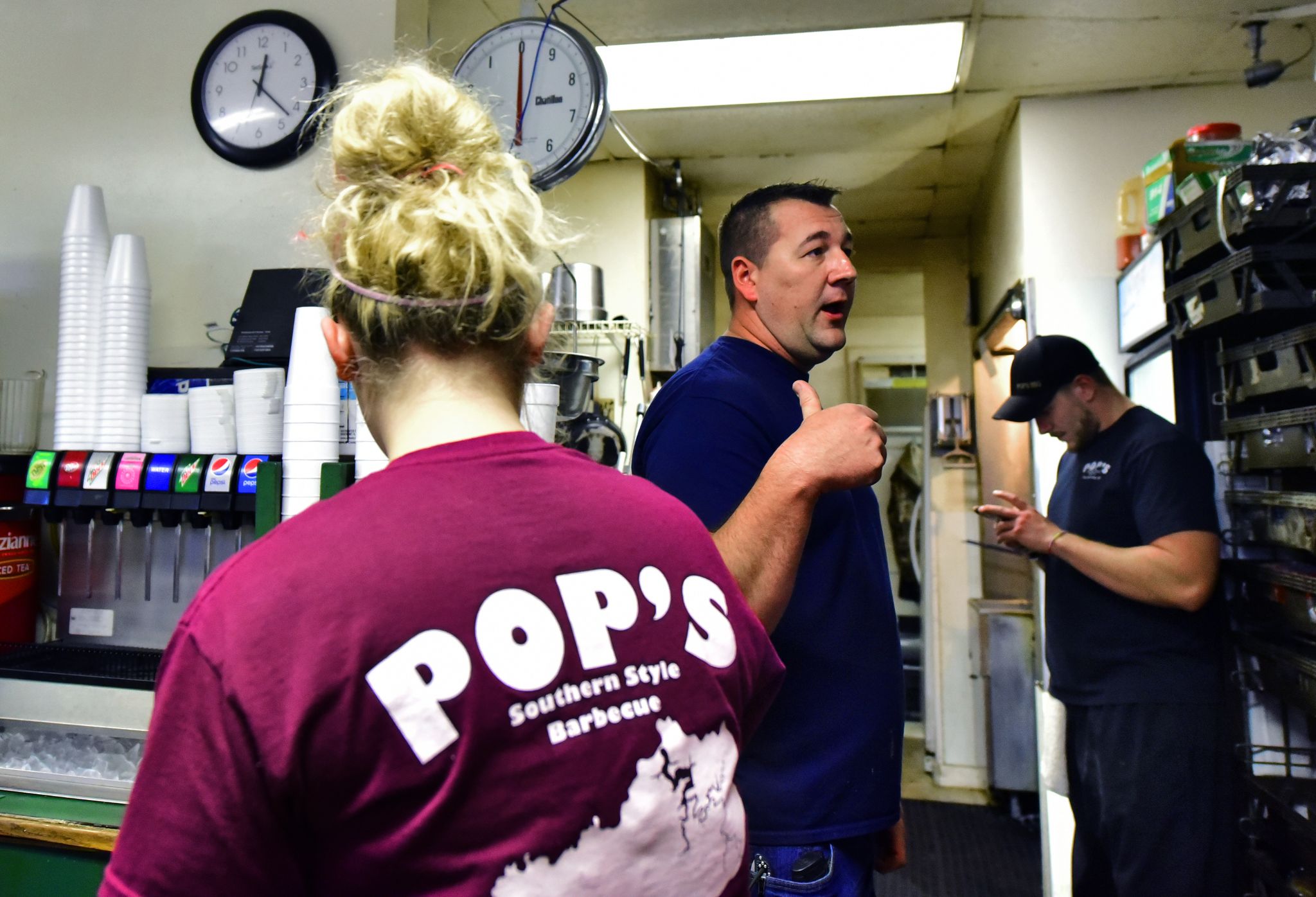 The team rushes around the kitchen where tapping silverware and sizzling oil in the fryer are momentarily interrupted by the announcement of a new order ticket as it’s added to the lineup. Locals and tourists from all over come to enjoy a brisket reuben, catfish filet, smoked pulled pork platter, or a deep fried mini apple pie.