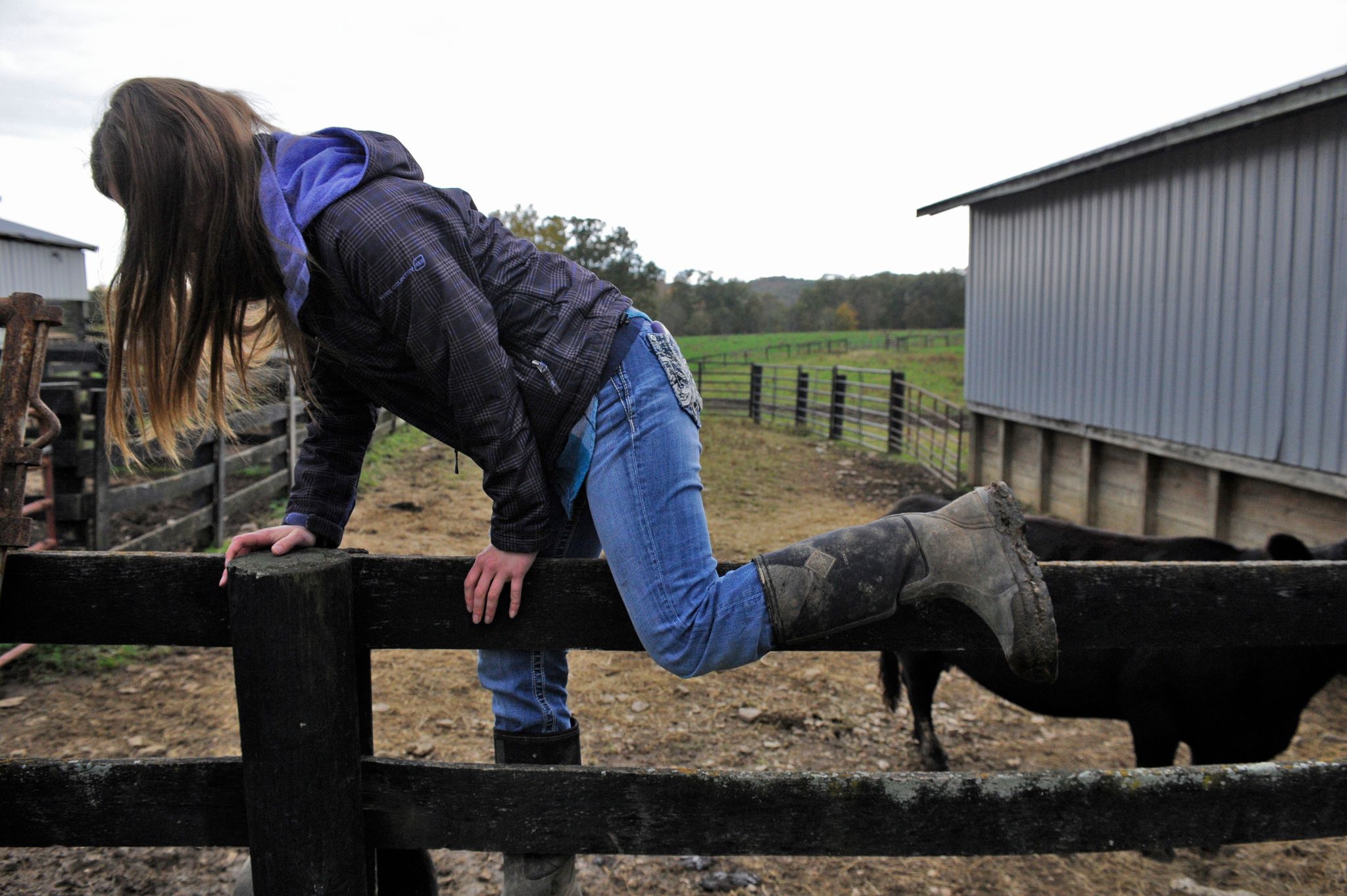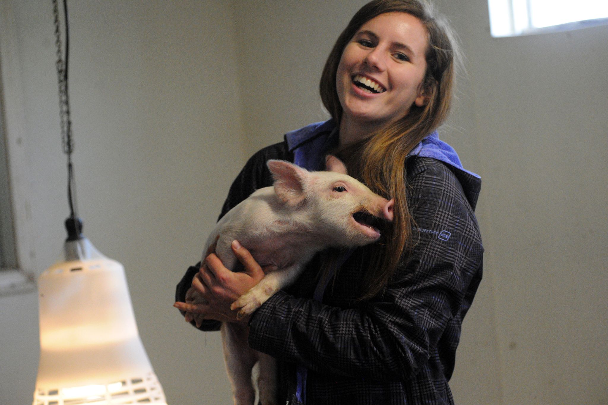 Audrey smiles broadly as she goes back to hosing and cleaning the manure in one of the hog pens. It may not be glamorous, but she’s happy.