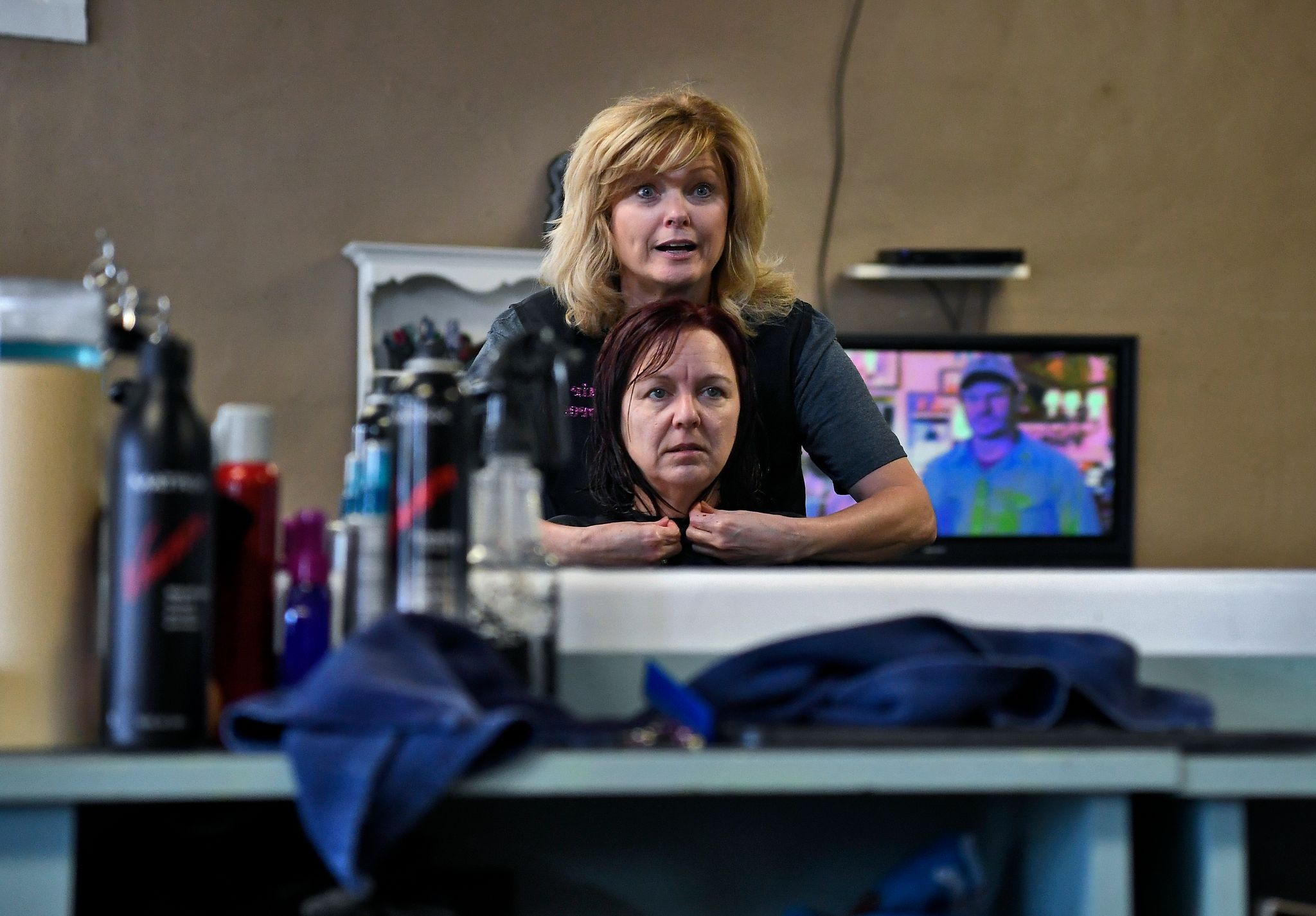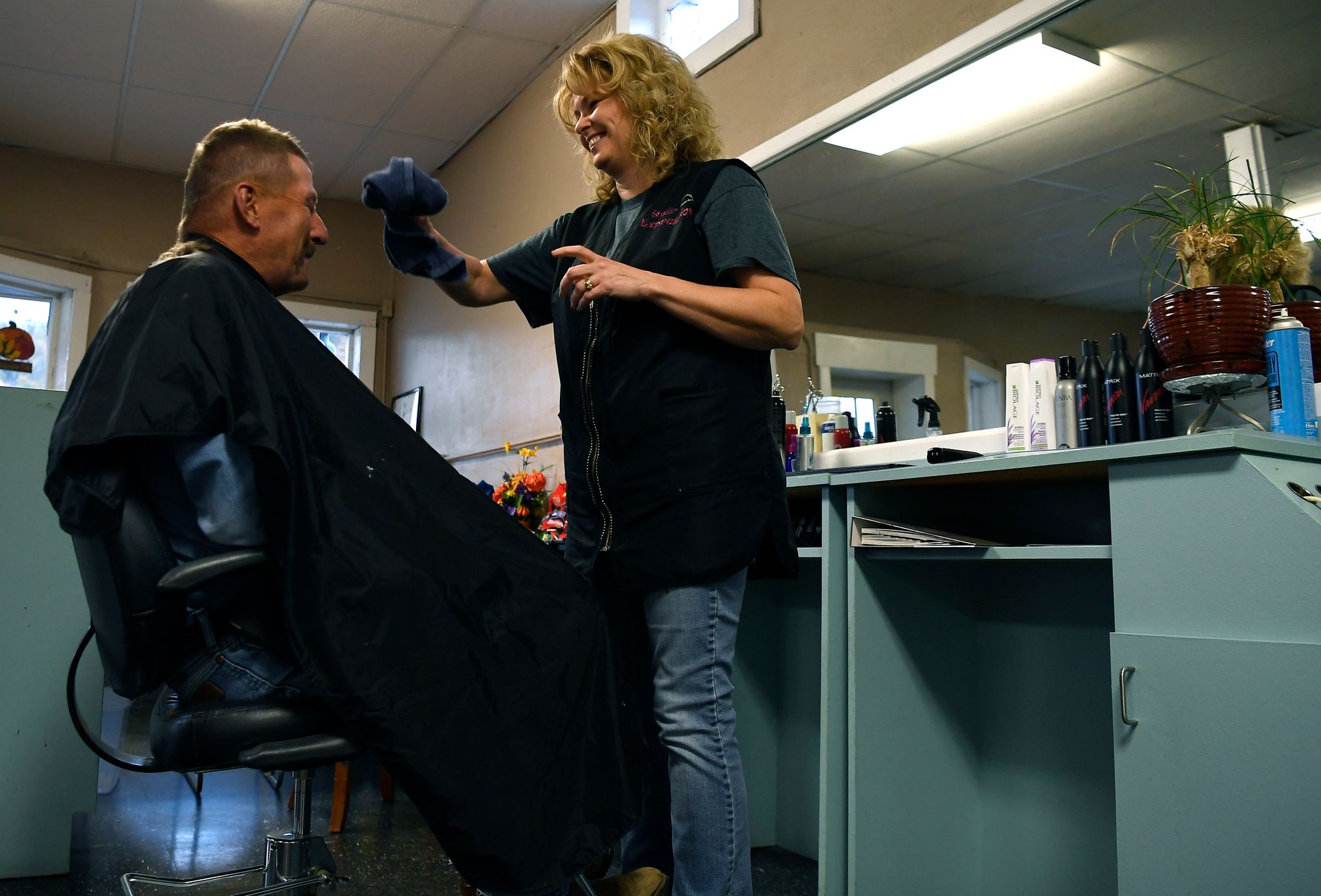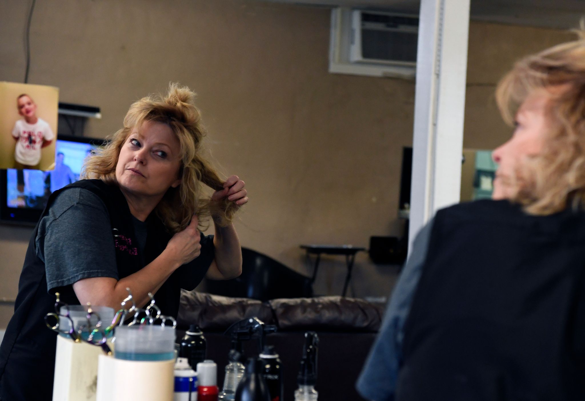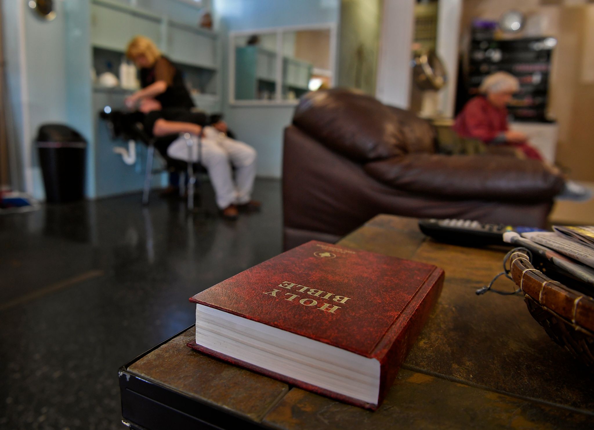 “People say they find comfort when they come to my shop because they can feel love, they feel Jesus,” says Robyn Cline, 52, owner of Hair Expressions beauty salon in Morehead.