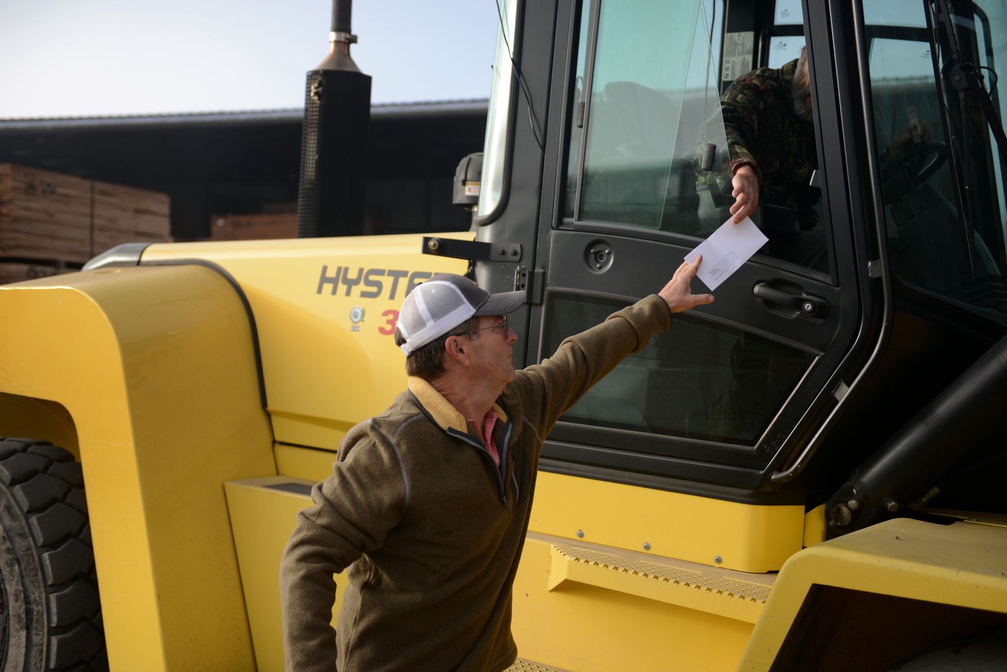 Back when Milton started, lumber was loaded and unloaded by hand and horses carried logs around the lot. Darrel remembers when his dad came home after working on the yard.