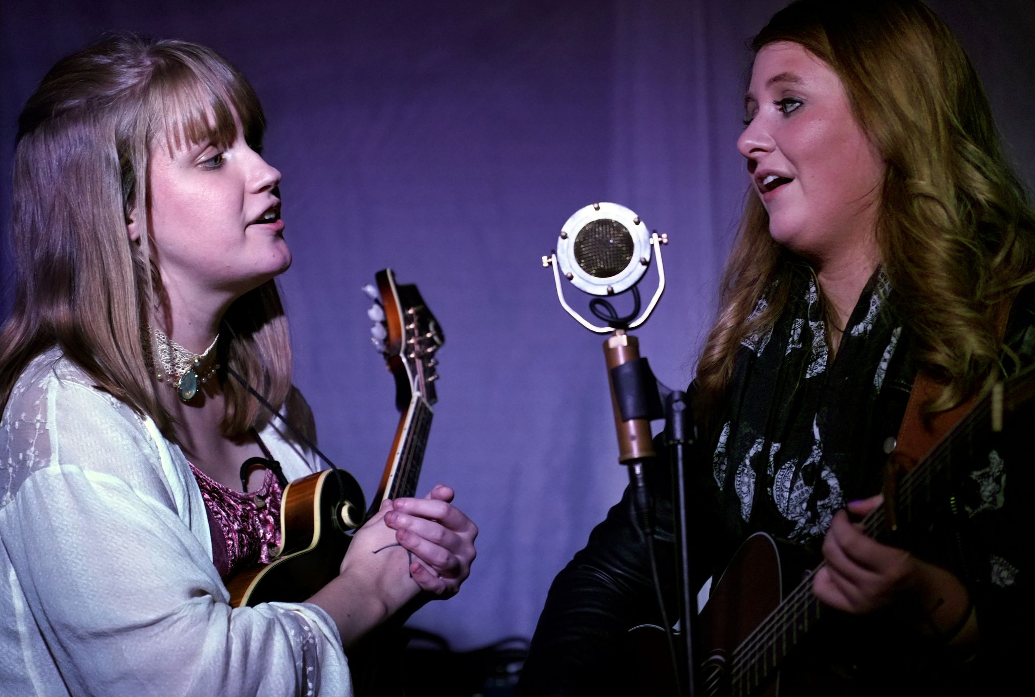The girls are both majors in Traditional Music Studies at Morehead State University and dream of making a living from their music. They met through mutual friends who introduced them at dinner following a pre-semester audition. Less than a month later, they recognized a mutual passion for folk music and knew they wanted to play music together. As The Tealights, they travel to perform at bars and other venues while working toward the $1,000 necessary to make an album.