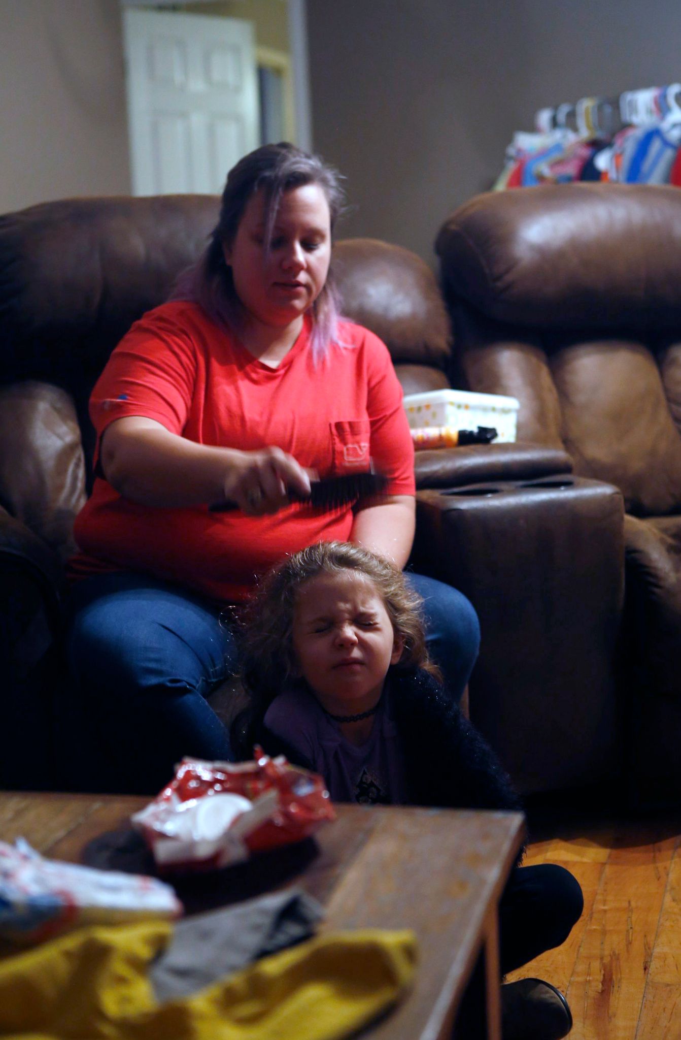 Allison describes mornings as an “everyone for themselves,” situation. If her girls get ready in time, she braids their hair while her husband, Jason, changes the youngest two’s diapers.