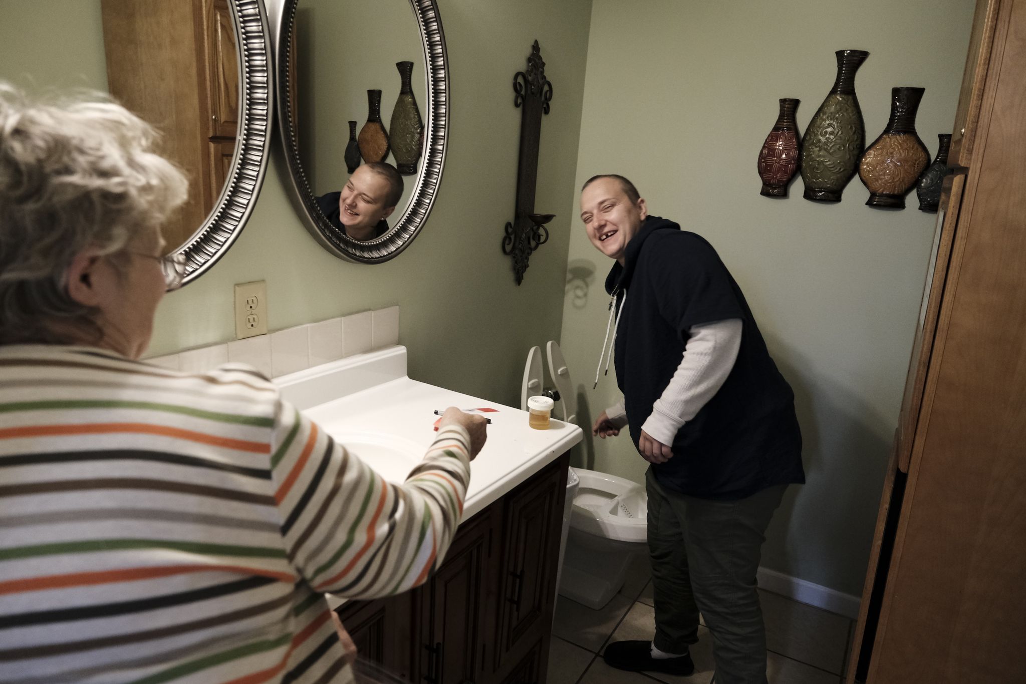Brett Berry, a 30-year-old man who has five children and was addicted to meth for four years, is the current male Accountability Box carrier.