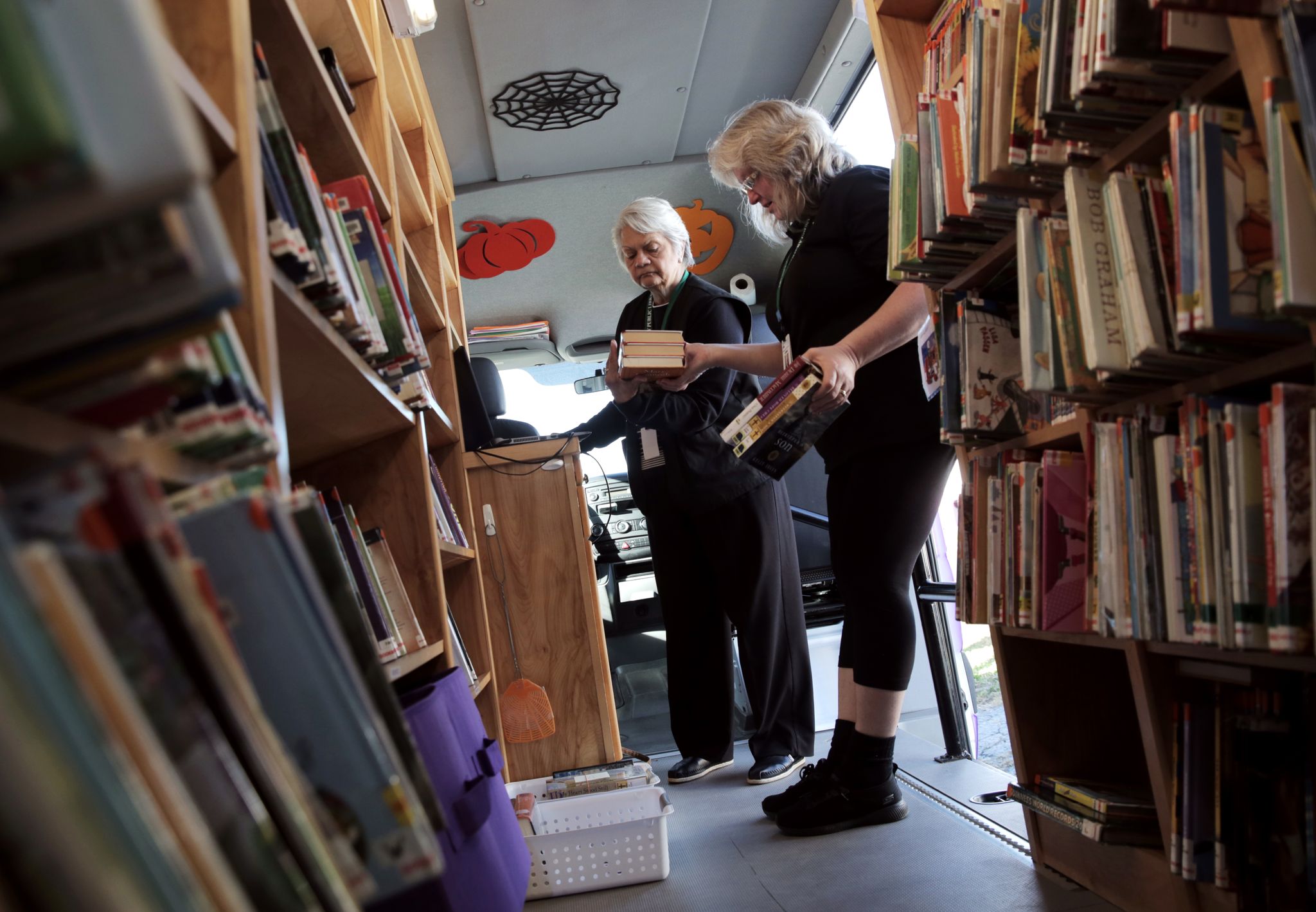 Linda, 55, started driving the bookmobile in November 2017. The job has bridged a gap in her life.