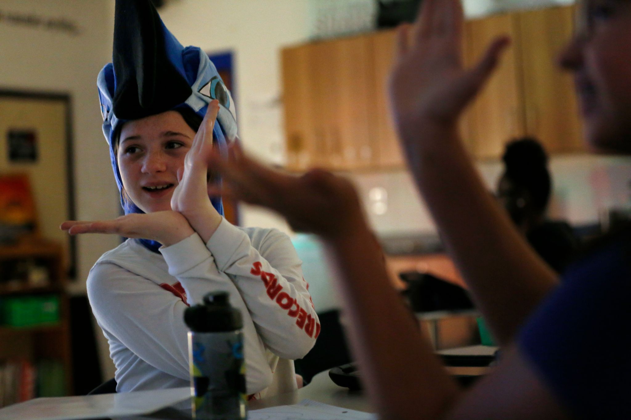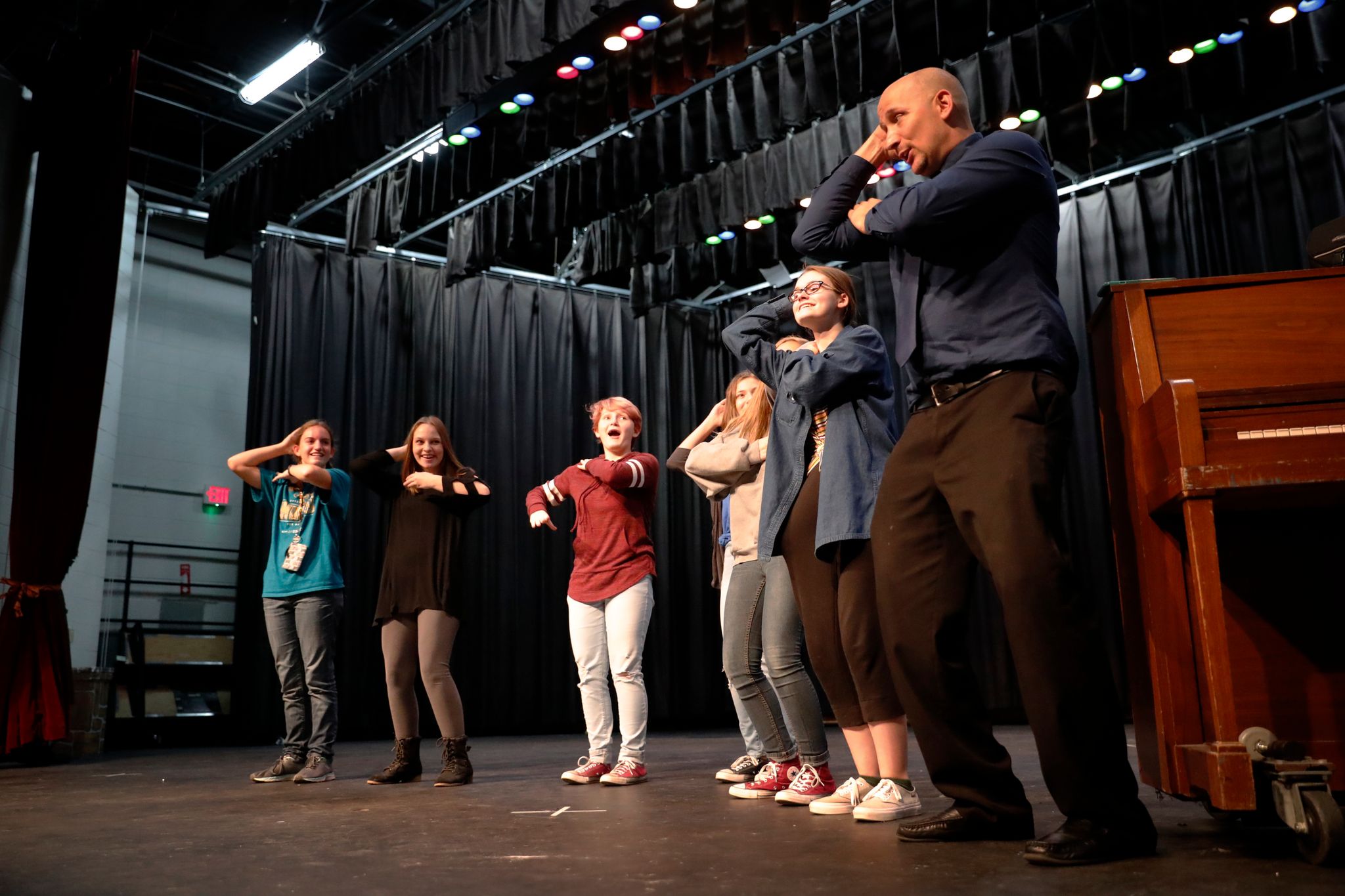 Caden Evans, a seventh-grade drama student, says Adam makes everything fun. “His class calms me down,” he says. “My other classes stress me out and then I come to his class and I feel better.”
