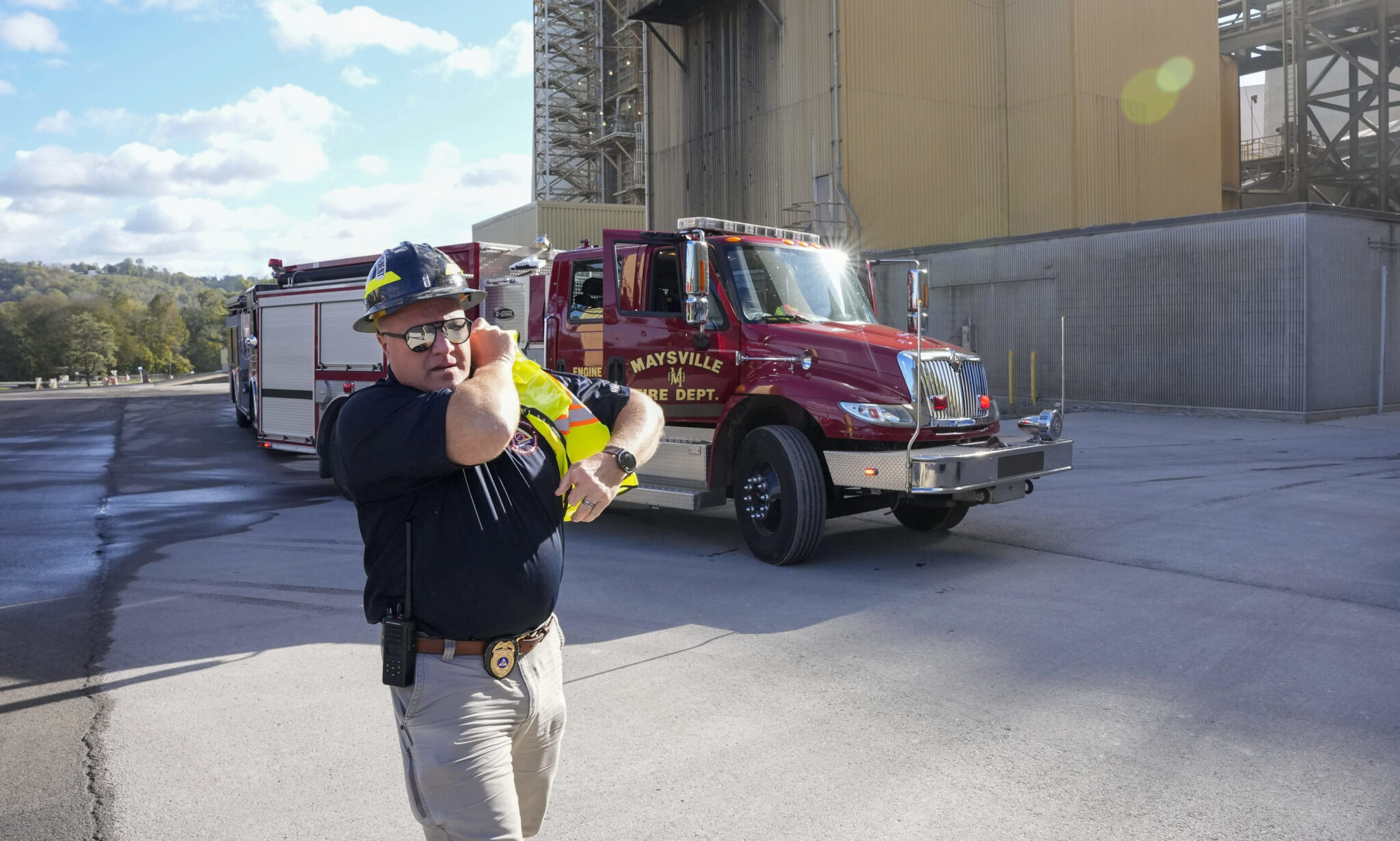 The radio squawks just as Tony Liess begins a powerpoint presentation for the Maysville Fire Department chief and assistant chief in preparation for the biannual Local Emergency Planning Committee meeting. There’s a fire at East Kentucky Power Co-op Spurlock Station. Tony goes from office mode to emergency response in a flash. Pedal to the metal, sirens blaring, Tony is at the scene in a matter of minutes. In one swift move he exits the car, puts on his helmet and enters the power plant where the fire had already been extinguished.