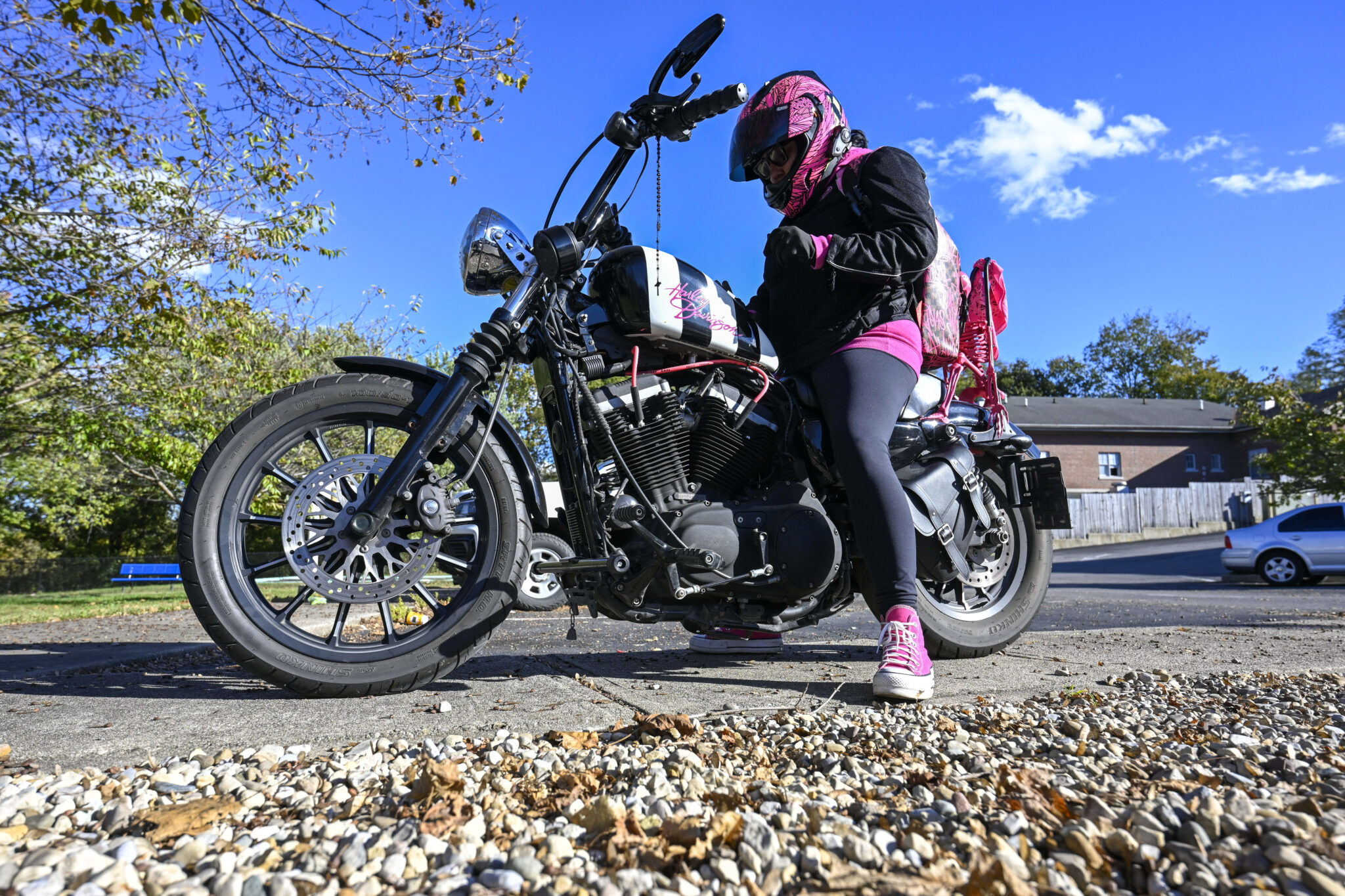 When she’s not riding her pink, black and white motorcycle, affectionately named Morticia, she’s making her rounds through the city’s neighborhoods, clipboard in hand and smile wide, looking for potential problems before they have a chance to become problems.