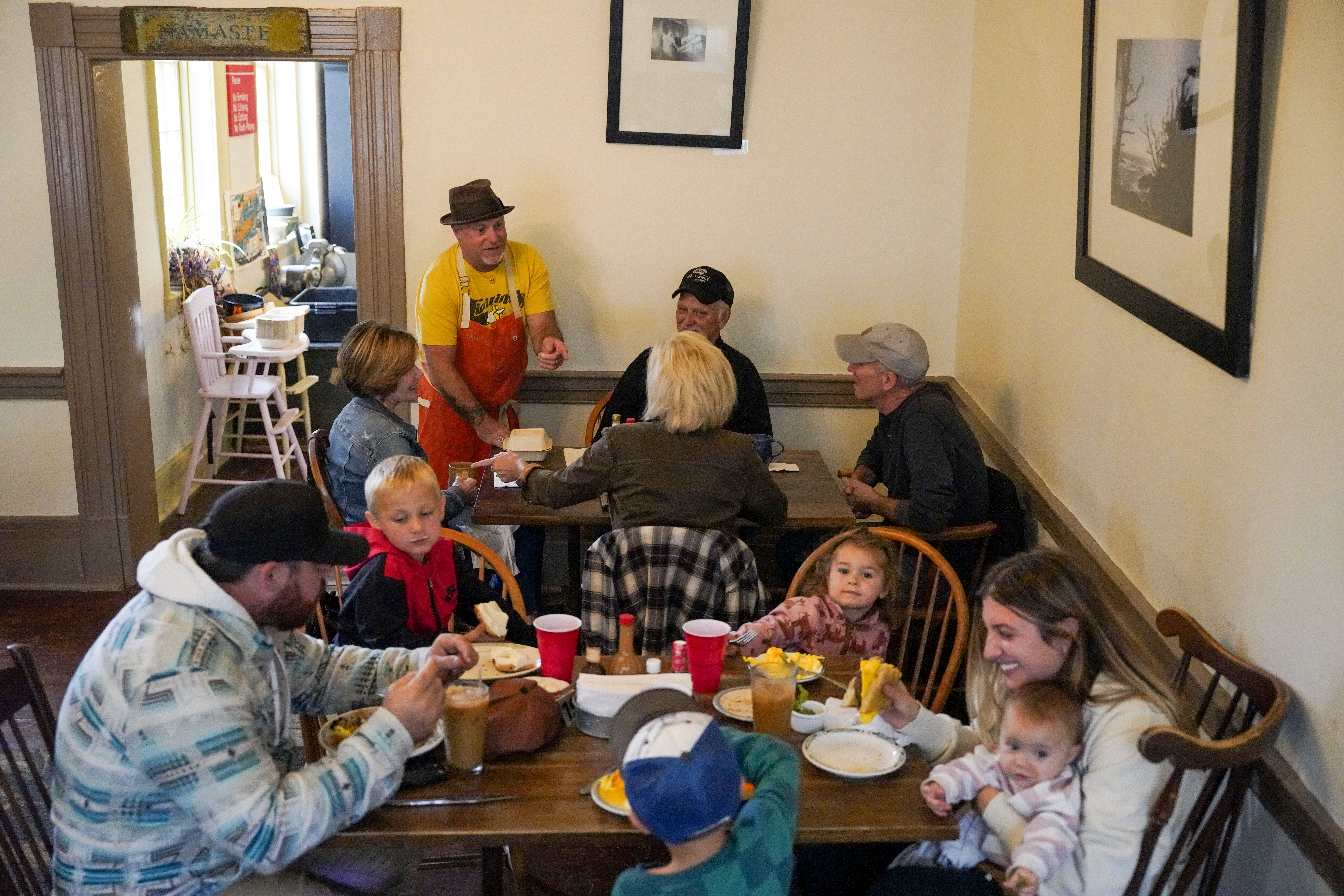 At first, Connelly worried the Maysville community wouldn’t accept his unique menu or abrasive personality, so he opened a 14-foot mobile coffee trailer to test the market. Finding success, he was offered a space in the century-old Washington Hall. As a designated historical site, the space isn’t zoned for commercial cookware. Instead, Connelly uses two small pizza ovens and a gas stovetop to serve homestyle meals for his guests.