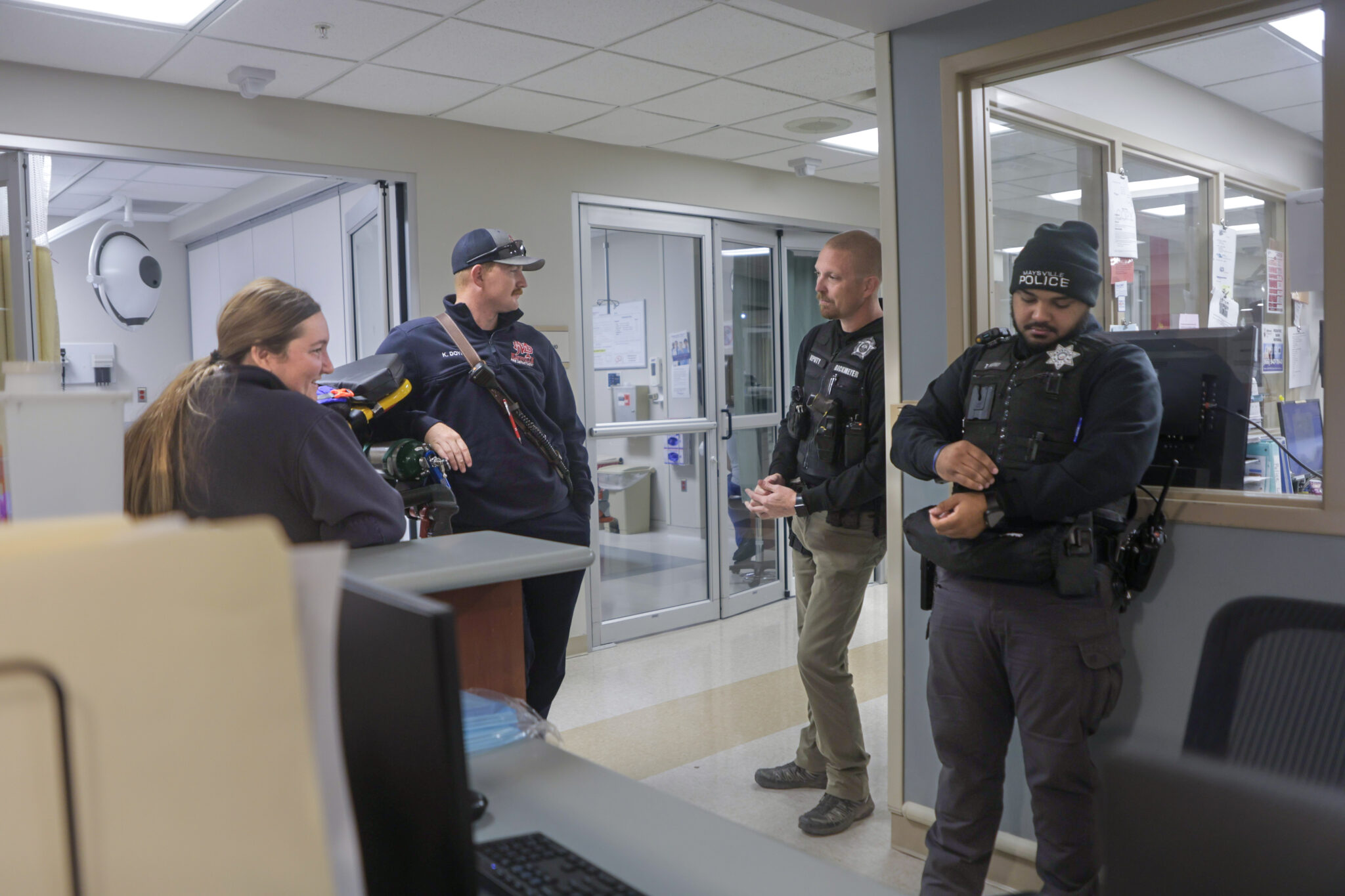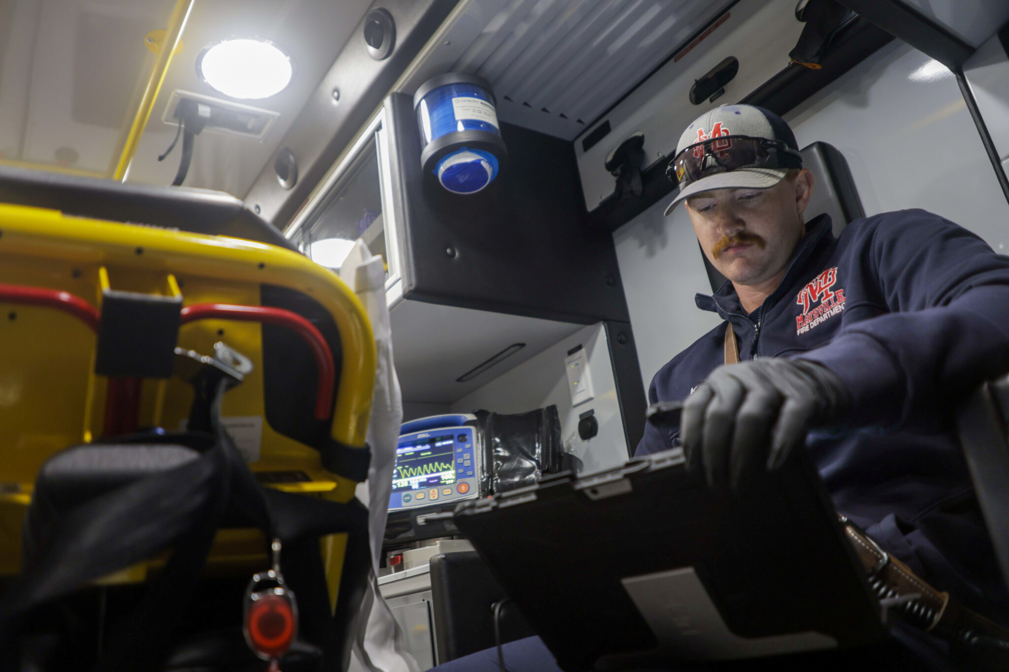 A high-pitched tone rang out on the radio, muting light-hearted teasing before a muffled dispatcher relayed the call to the firefighter/EMT crew.