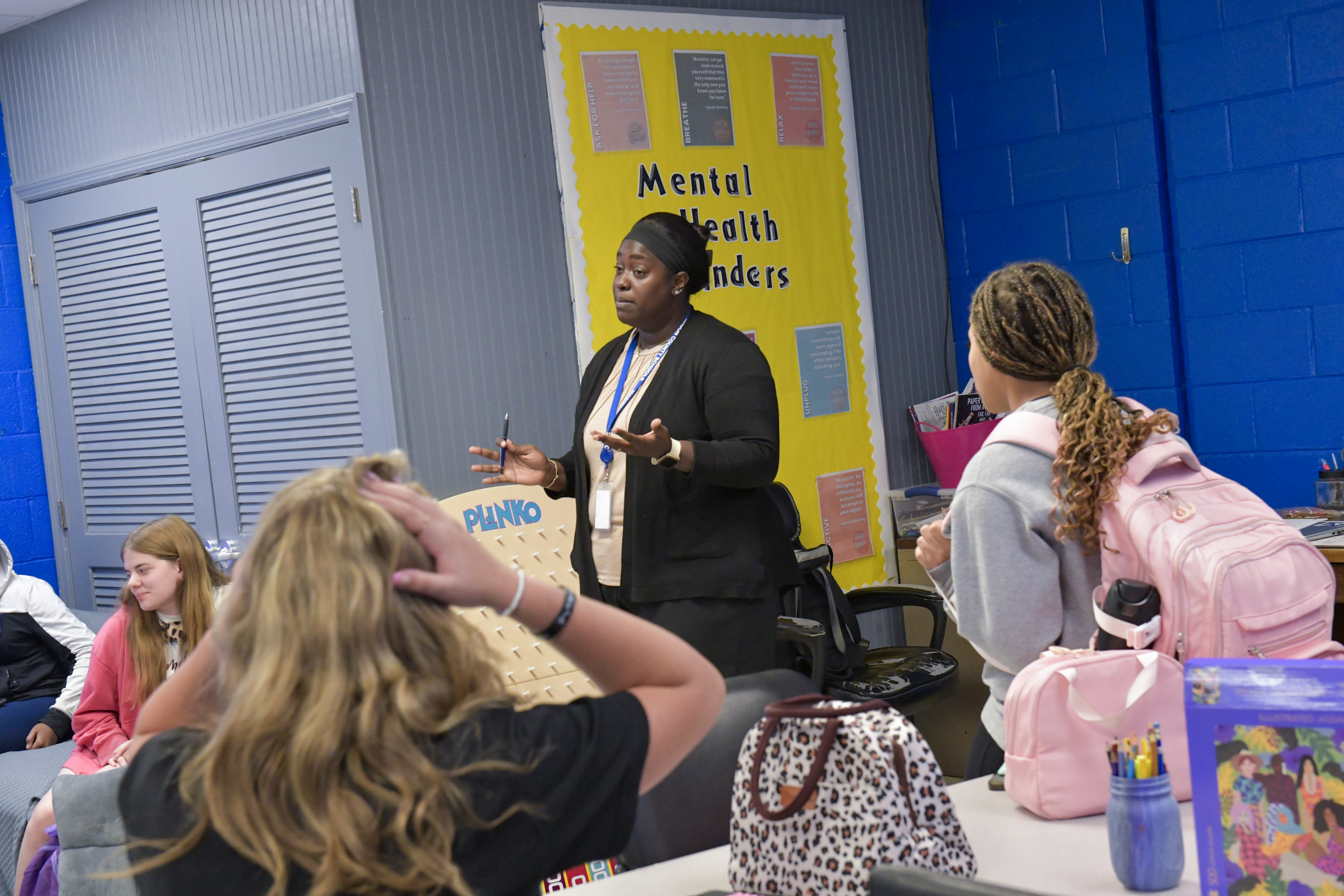 In the classroom at Mason County High School, where De’Sarae works, she focuses on students who might experience barriers to employment. Her programs provide targeted services and education for careers in the trades.
