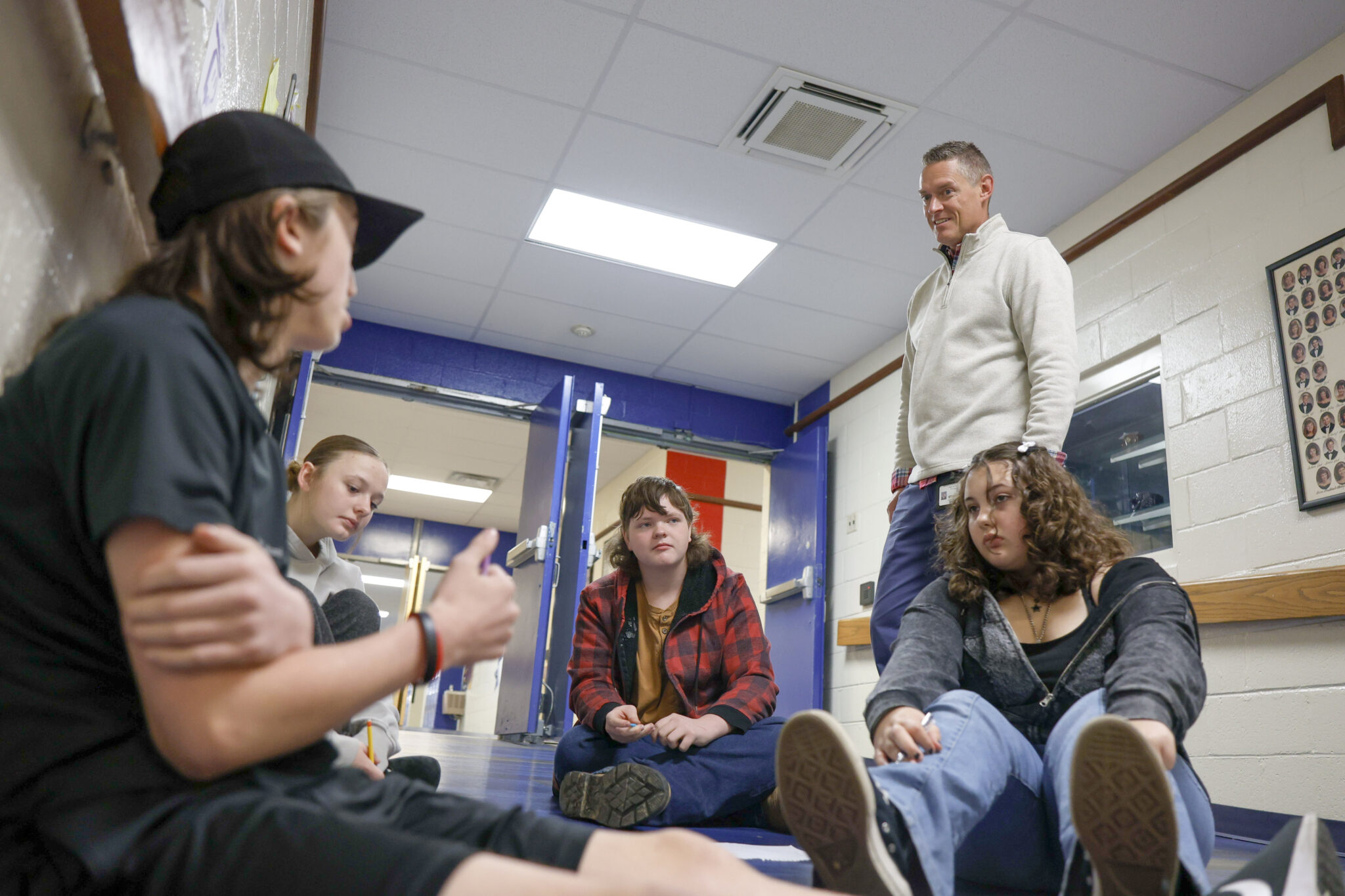 In the early morning chill, Seth Faulkner stands in the parking lot of Mason County High School (MCHS). As the sun rises, students start to flow out of the parking lot. He bumps fists with students as they walk into school. Some, he congratulates on a big volleyball win. Others, he reminds to wear a coat with the changing seasons. Shouting to parents in cars, he comments on recent football games. When the first bell rings, he quietly makes his way inside.