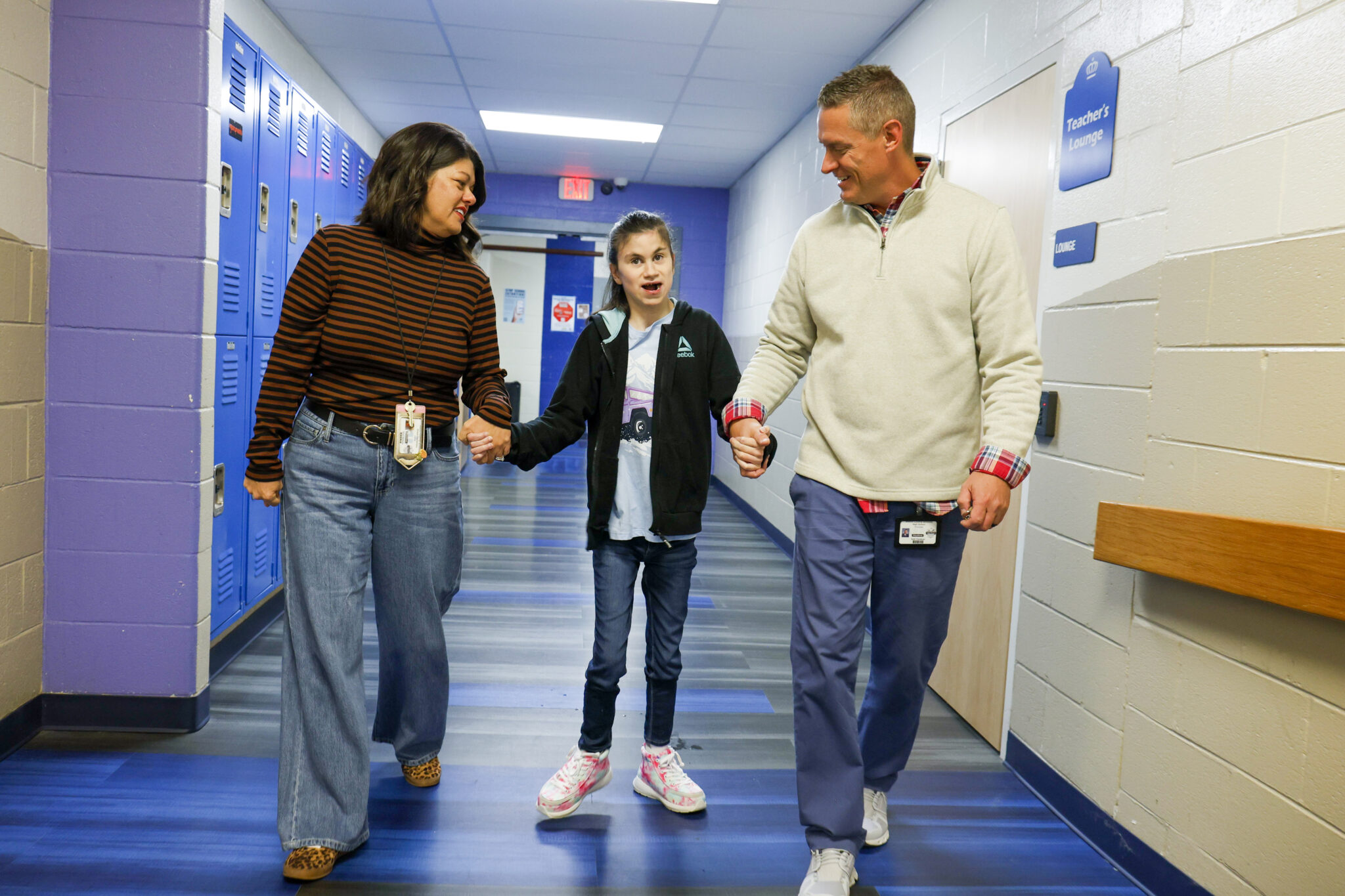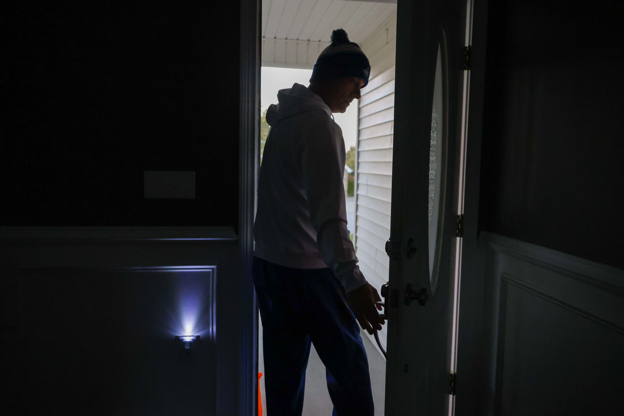 At home in the evenings, Seth exchanges his jacket for an MCHS sweatshirt and plays with his dog, Zeke. His dad waits for him in his driveway, and together they take a three-mile walk to catch each other up on their days. On their walk, locals honk and wave as they walk along a main roadway. They wave or shout back.