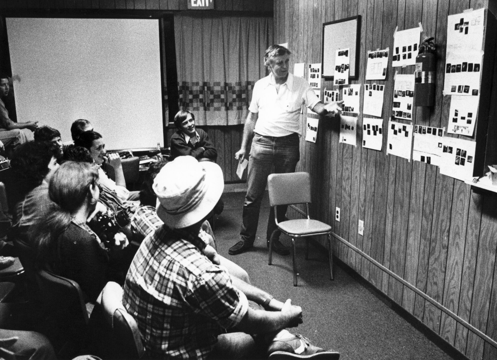 Photo by Lewis GardnerArt Goldsmith talks about his new book on the history of photography.The lab in Clairfield,Tennessee.Arthur Goldsmith, editor of Popular Photographer, critiques student’s work in Clairfield, TN in 1979.Left to right, Marie Cirillo, Mountain Social Worker; C. Thomas Hardin, CJ and Times Chief Photographer; Frank Johnston, Washington Post; Mike Morse, Chairman of WKU Photojournalism Major, Art Goldsmith, Popular Photography.Tom Hardin (left) Arthur Goldsmith on right talk to students around a table in Community Center.