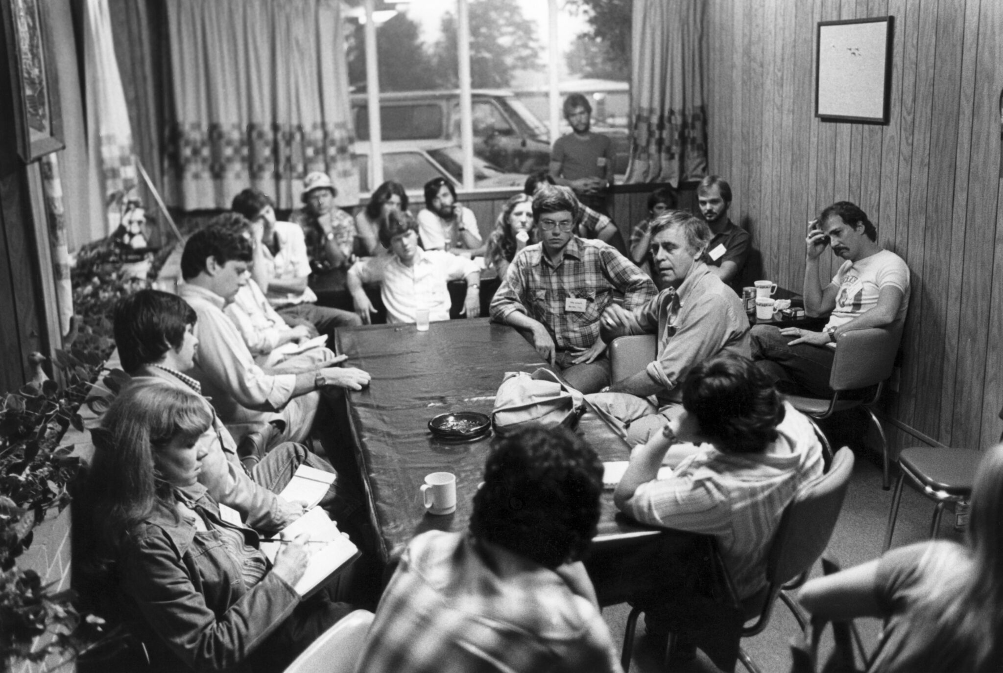 Jack Corn, right, talks with workshop participant Tipper Gore.Participants in the 1979 workshop from left Michael Hayman (left in back) and Mark Workman (middle).