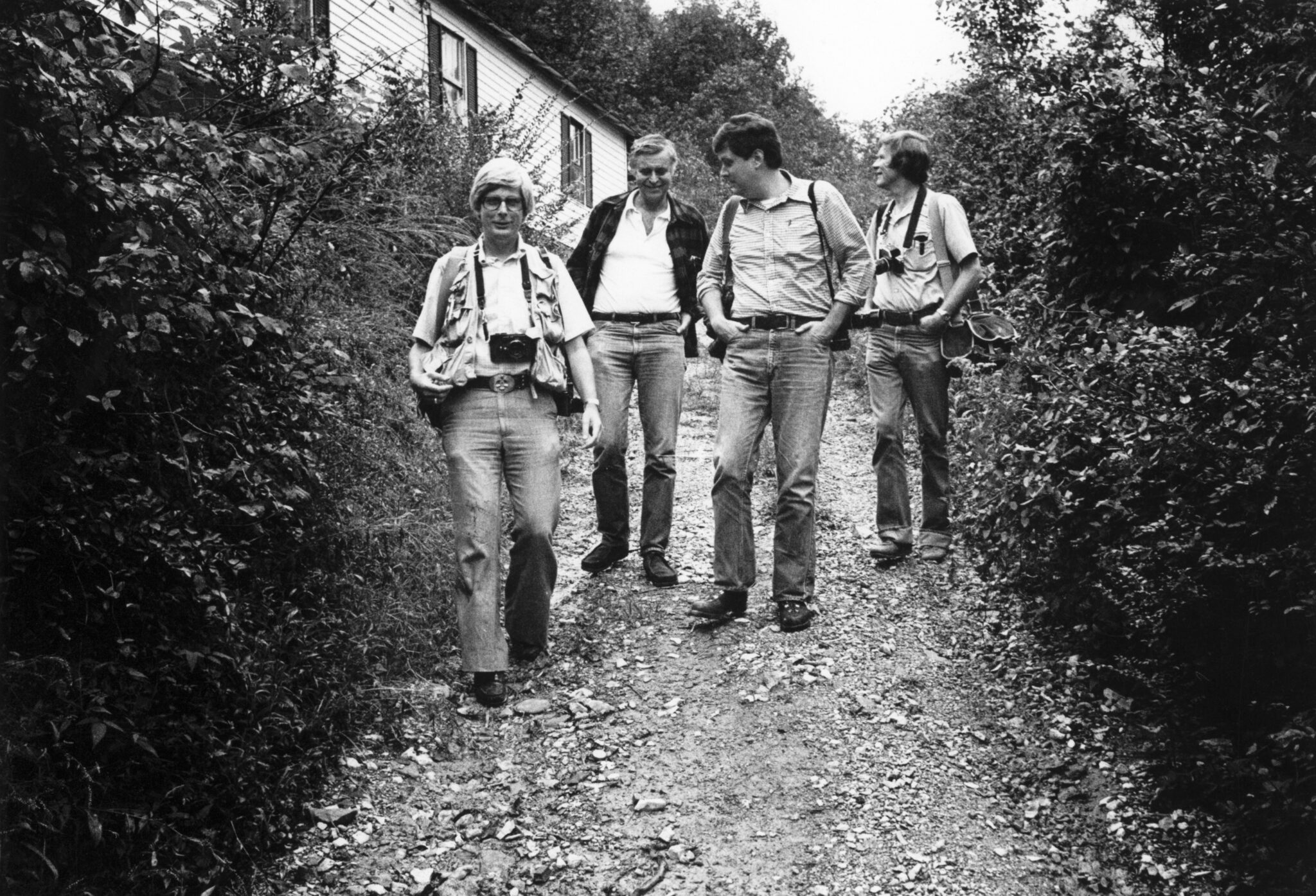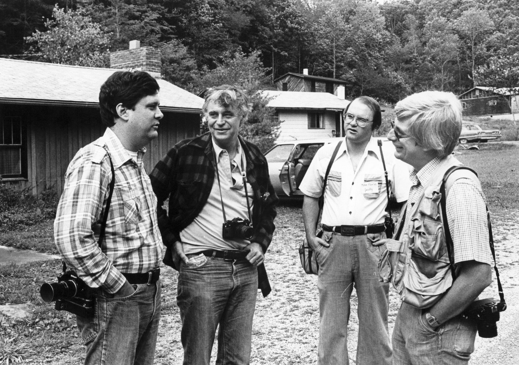 Photo by Lewis Gardnerfrom left – Frank Johnston, Arthur Goldsmith, Tom Hardin, and Jack Corn. first coaches for Mountain Workshops in Clairfield, TN 1979.Tom Hardin views contact proofs.from left – Tom Hardin, Arthur Goldsmith, Mike Morse, Frank Johnston. first coaches for Mountain Workshops.