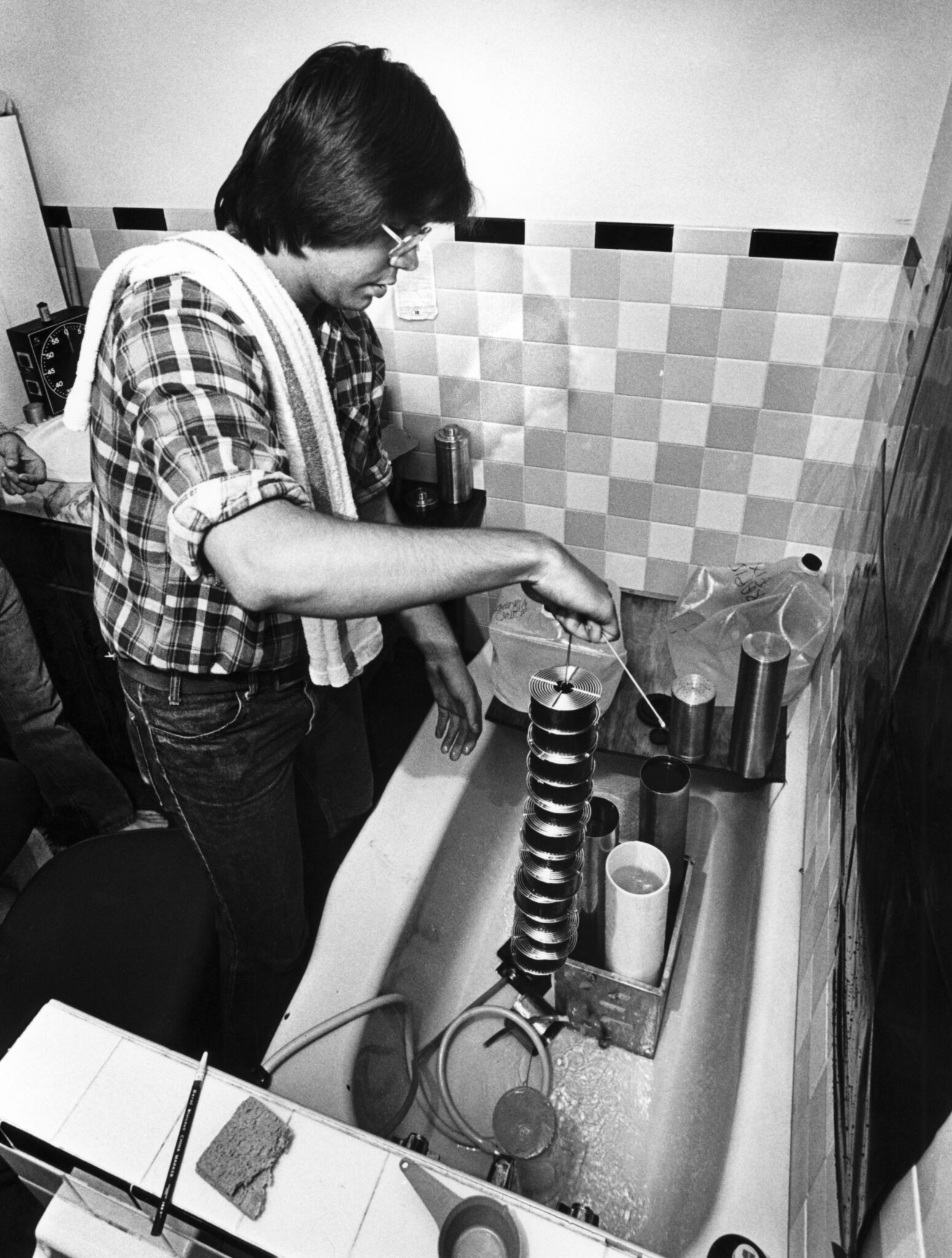 Faculty Ricardo Ferro (back row, second from left), Don Sturkey (front row left) then Jack Corn then Mike Morse.Photo by Lewis GardnerDavid Frank, left and Kim Kolarik, right in the first Mountain Peoples Workshop lab experience. 1980